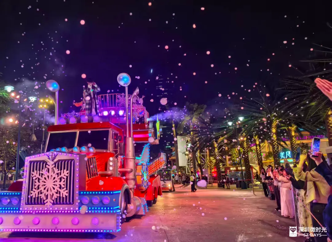 深圳欢乐谷,12月份的夜游活动被人工雪花营造得如梦如幻 如梦如幻的人工造雪,是这场巡游中的互动主题。无论是站在花车上的NPC,还是花车下的游客,大部分都手持一瓶造雪喷雾,互相喷雪是游客和NPC的互动方式之一。走在巡游队伍前列的游乐场工作人员,小推车里就售卖造雪喷雾,10块钱一支,15块钱两支。 走在队伍前列的一个年轻清秀的NPC,与女性游客的互动方式通常是,年轻女孩对着半空喷出雪花,雪花在空中飘散的20秒里,这位NPC旋转几秒舞步,在雪花飘落中伸开双臂,把女孩拥进怀里,整套动作行云流水、丝滑至极。在造雪喷雾制造的浪漫水晶球里,十秒左右的拥抱如电影场景一般唯美。 在1小时左右的巡游里,这位NPC平均每隔两米,就要复制粘贴一般地与路边的女孩完成一次初雪相拥。在巡游后半段,NPC的头顶已覆盖上一层白色泡沫。 一名头上戴着帽子发饰的女生,守在巡游队伍的最前方,隔几分钟她会冲着队伍喊出某个NPC的名字,继而兴奋地尖叫,大多数时候,听到呼唤的NPC会转身走到她面前,用嘟脸、比心、拥抱等一套标准化动作完成合影。女孩和另外两名女孩组成了一个小团队,她们是这里的常客,认识队伍中的不少NPC。 小团队中的三名女孩,跟一位扮演古装角色的NPC尤为熟悉,“他是我们的诡秘”,女孩指着这个NPC说。这名NPC是今年9月份惊奇潮玩节进入欢乐谷,经常在社交账号上分享NPC工作日常,社交账号上的粉丝有上千人。 巡游结束后,其他NPC或者离开现场,或者登上表演舞台,只有那位跳了一路初雪拥抱舞的NPC被热情的游客留了下来,不断有女孩找他合影,他弯曲双腿,与女孩们保持相等的高度,一个个合影结束后,他背过身时卸下笑容,轻叹了一口气。 在一个个合影过后,这个男孩终于离开了草地,他疾步往前,三名游客紧随其后,男孩回身摆手道别,游客仍然跟在他身后,他脚步加快,三名游客在身后对了一下眼神,然后散开围成一个半圆,开始往男孩身上喷造雪喷雾,新的追逐又开始了。