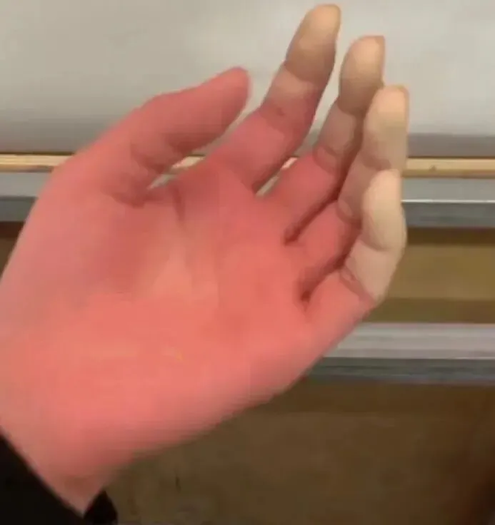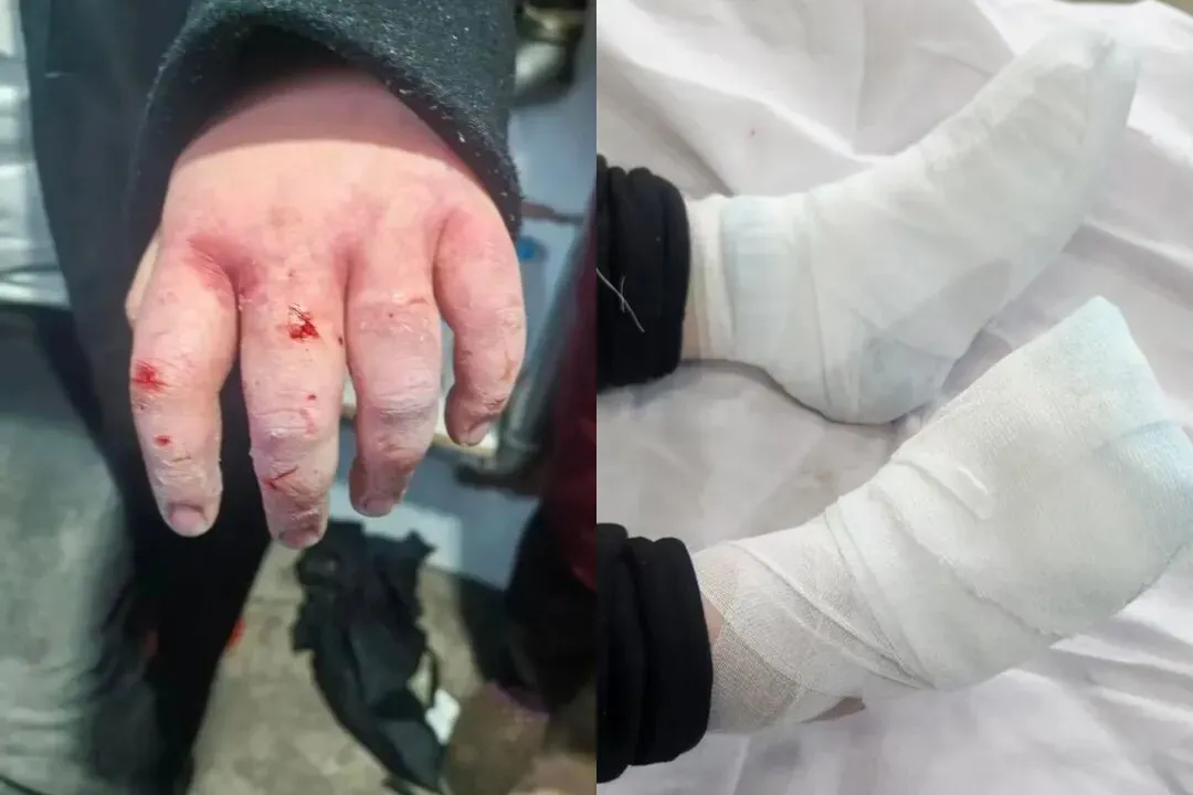 2024年12月,吉林通化一女孩在-18℃的户外没戴手套跑步,手被冻得发白,险截肢。图源:河北新闻网