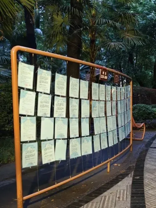 在这里,你会理解成都人的时间观——喝茶不是活动间隙的休息,而是生活的中心事件。旁边的相亲角已经热闹起来,树上挂满的征婚信息成了一道社会学景观。“87年高校教师”、“有房有车求缘分”,每张纸片都是一个生活故事。