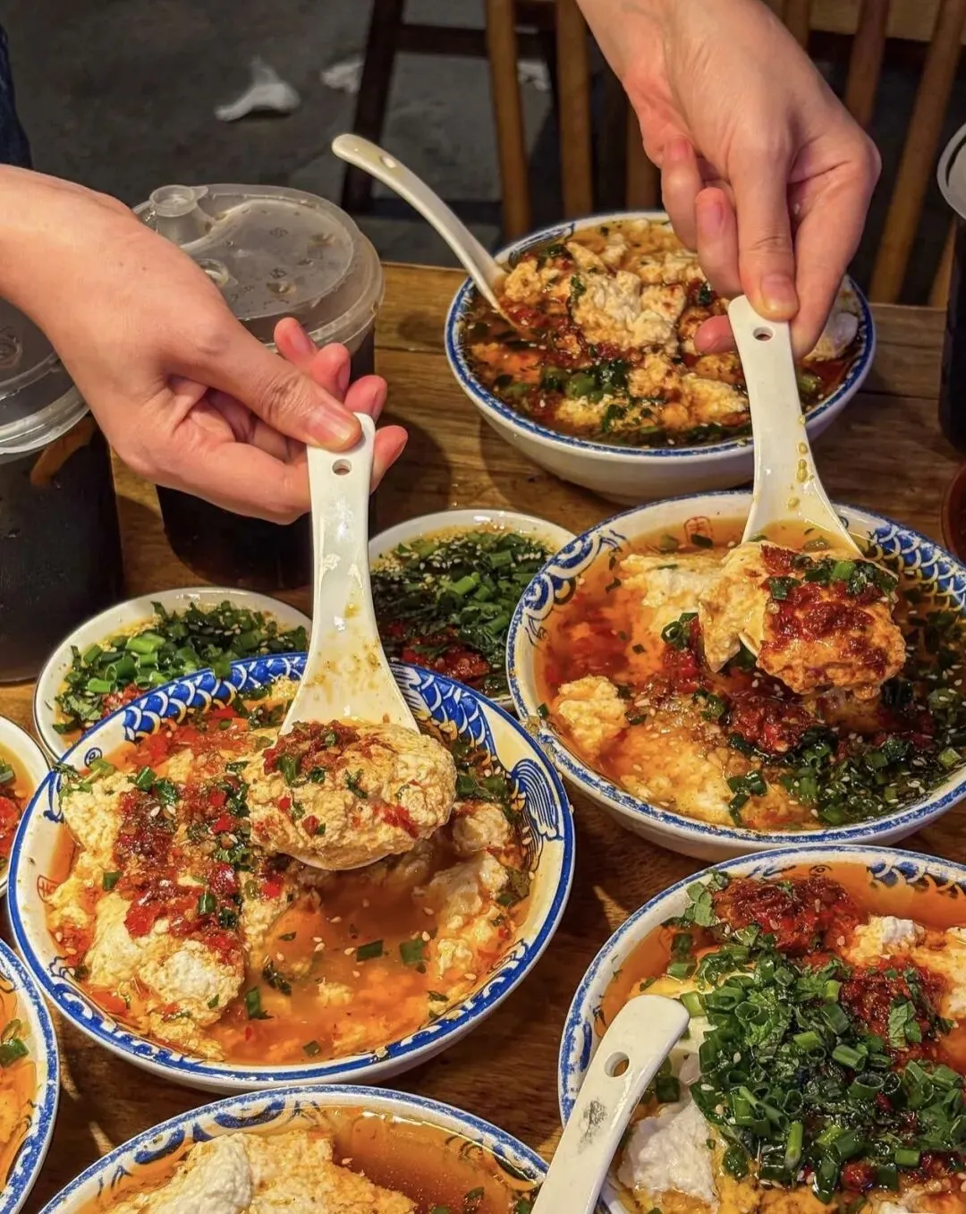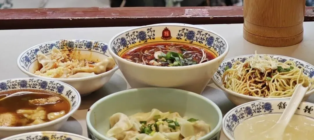 公园东门的钟水饺总店已经排起队,地道的成都人会点一份水饺配一碗原汤。钟水饺的特色在皮薄馅嫩和红油调料,微甜中带着椒香,与北方的蘸醋吃法完全不同。