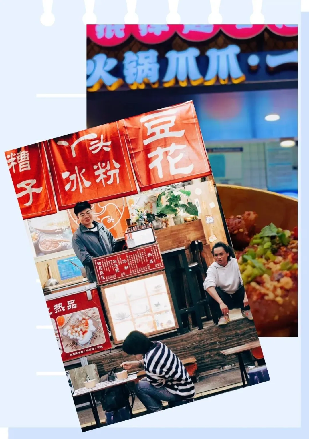“降龙爪爪”的砂锅里炖着软烂的鸡爪,有火锅味、冬阴功味和老卤味。“丫头冰粉”的手搓冰粉能看到明显的气泡,搭配糍粑和新鲜水果,解辣又清爽。