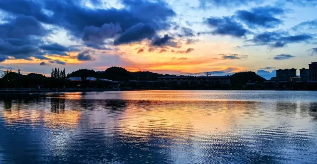娄湖公园是观赏落日的好地方。