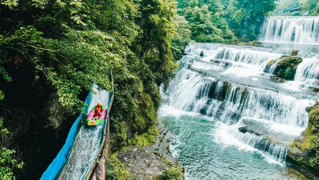 “桃源在何许?西峰最深处。不用问渔人,沿溪踏花去!”王阳明先生笔下的诗意秘境,如今已成为享誉黔中的漂流胜地。桃源河漂流坐落于贵阳市修文县六屯镇,距主城区仅40公里,以192米总落差的“中国魔幻漂流”为核心特色,将峡谷奇景、瀑布激流与创新玩法深度融合,打造出兼具刺激体验与生态之美的沉浸式旅游目的地。漂流河道蜿蜒10公里,途经魔幻洞渠、峭壁引槽、架空滑道等特色节点,前半段激流勇进、跌宕起伏,后半段平缓惬意、山水相伴,让游客在动静之间尽赏“黔中福地”的自然馈赠。