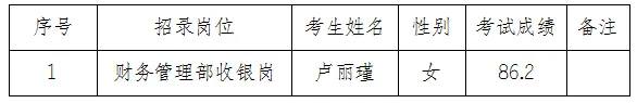 芒市国富文化旅游产业开发有限公司根据2025年12月22日发布的《芒市国富文化旅游产业开发有限公司招聘信息》,通过笔试、面试、体检、考察等招聘程序最终确定1名财务管理部收银岗拟聘用人员。现将拟录用人员名单公示如下: