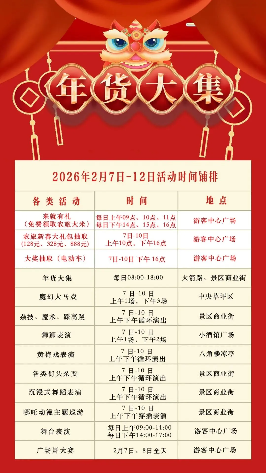 (发放时间:2月7日-10日 下午16点,游客中心大屏扫码参与抽奖)