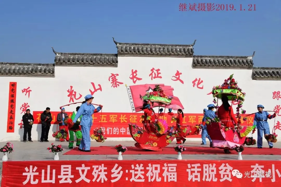 仪式上,县政协副主席、文殊乡党委书记李奎,县文广新局局长蔡大恩等领导为“红军饭店”揭牌。同时,县文广新局、文殊乡政府联合组织了以红军题材为主的文艺演出活动,新编花鼓戏《花山寨上帮扶情》首次公开亮相,将演出推向高潮。