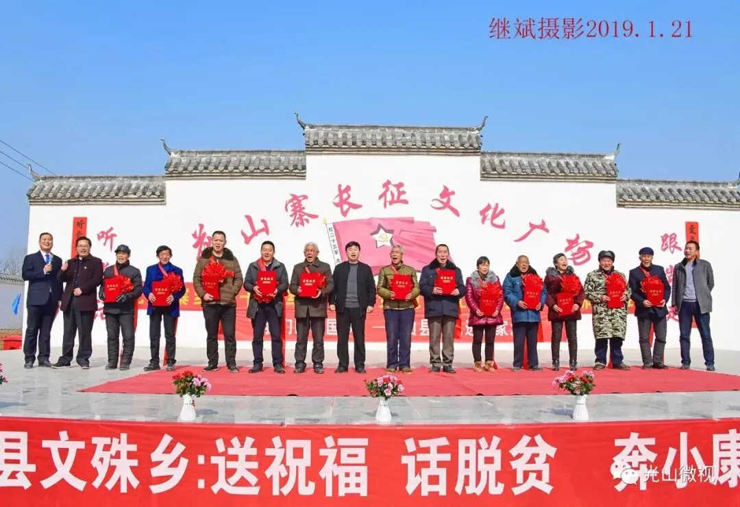 1月21日上午,在文殊乡花山村花山寨会议旧址内,锣鼓喧天,歌声嘹亮,文殊乡“送祝福,话脱贫,奔小康”活动暨花山寨“红军饭店、旅游商店”揭牌仪式在这里举行。红军饭店及旅游商店是我县首家以红军命名的“两店”,为我县红色旅游景区的开发与利用增添了新的亮点。