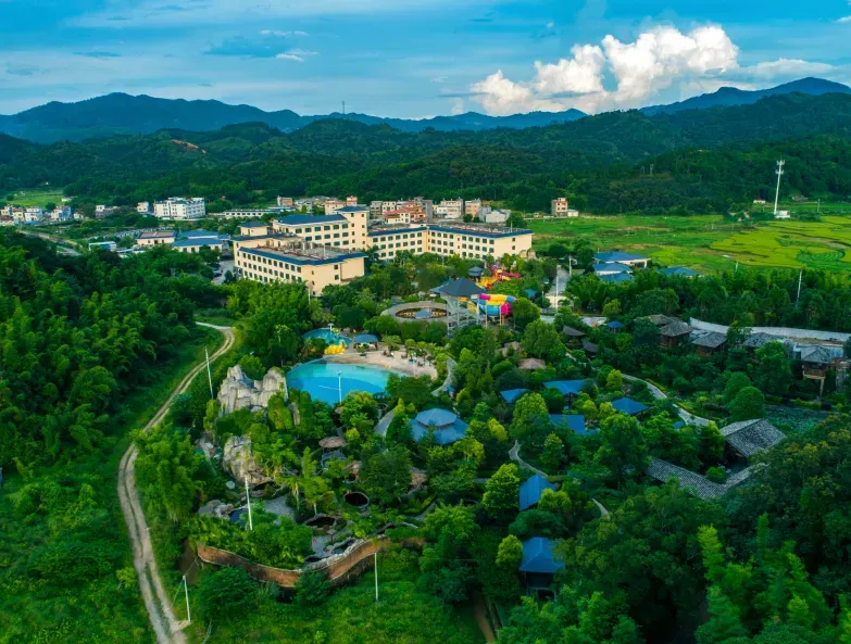 16:00-17:00 随后乘车前往【叶园温泉度假村】办理入住手续:叶园温泉度假酒店是由深圳市大田洋实业有限公 司投资兴建,是一所集休闲度假、娱乐健身、观光旅游、商务会议于一体的综合型的度假酒店,总占地面积 680 余亩。 群山环绕酒店环境优雅,空气清新,鸟语花香,位于河源市东源县黄田镇,是一个休闲旅游的度假胜地。