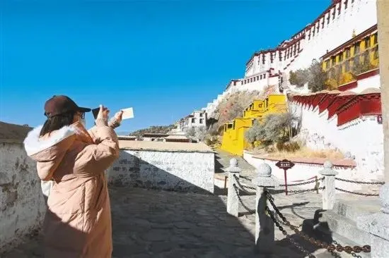 游客在布达拉宫拍照留念。西藏日报记者 旦增兰泽 摄