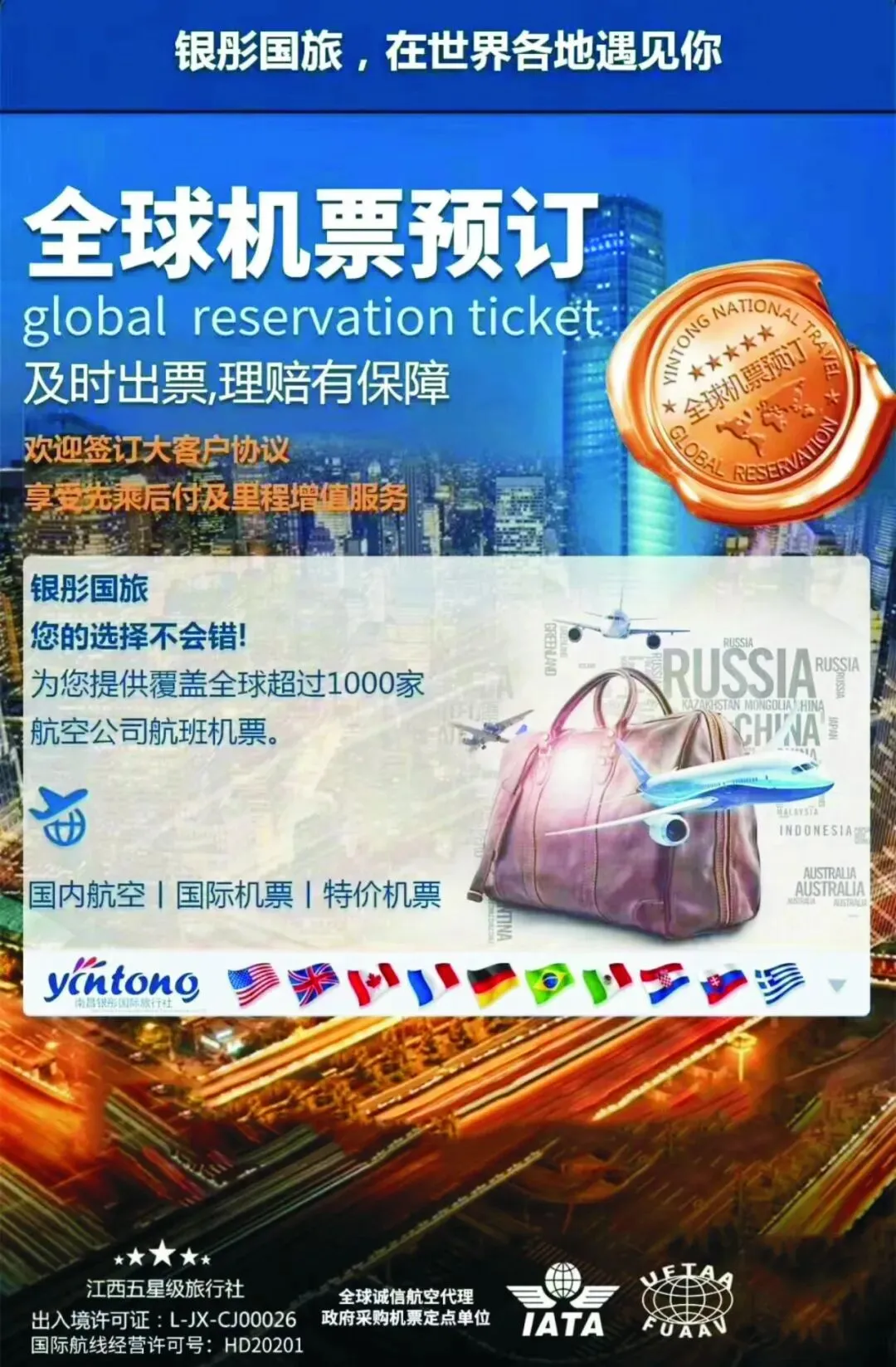 银彤(国际)集团有限公司始创于1996年,是一家深耕文旅、航空、外事、教育、传媒等多领域的综合性民营企业集团,凭借二十余年深厚行业积淀,集团已发展成为资历雄厚、资源广泛的国际化服务标杆企业,自组建以来在各级政府部门及社会各界支持下,始终坚持“以人为本”,依托科技进步强化企业管理,专注服务产业开拓发展,秉持“产品创新、经营创新、商业模式创新”的原则,不仅取得了辉煌业绩,更率先形成规模化服务能力。在业务布局与全球网络建设上,集团启动南昌、珠海双总部驱动协同发展战略,同时在北京、上海、广州、深圳、成都、武汉、南京等国内重点城市完成业务布局,目前已在 40 多个国家设立联络处,构建起覆盖全球的服务网络,旗下拥有多家核心子公司,南昌银彤航空服务有限公司、南昌银彤国际旅行集团、江西银彤文化传媒有限公司、江西银彤教育科技集团有限公司、珠海澳建教育产业集团有限公司,构建起多元互补的业务架构:同时兼顾国际专业属性与国内特色需求,以紧密协作、资源共享的产业链模式,实现各业务板块快速协同发展,既具备业务开拓的敏锐触觉,也大幅优化提升了集团整体竞争效力。为精准匹配客户需求,集团还设立四大核心服务中心 -- 银彤出海服务中心、银彤教育服务中心、银彤旅行服务中心、银彤传媒服务中心,以此为支撑,业务全面覆盖国际国内公商务差旅出行、国际外事办理、国际会务会展策划、出海全链条服务、红色文化教育、主题培训及特色文旅体验等多个领域。