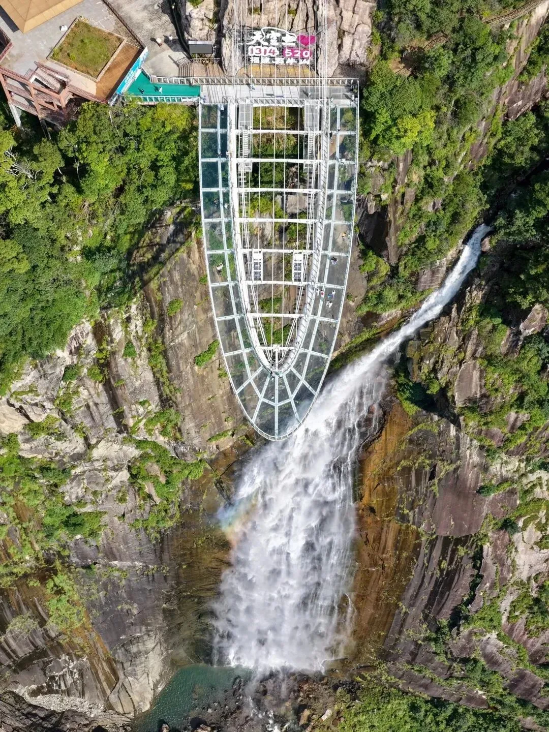 拥有“世界垂直高差最大的单边玻璃悬廊”、“世界垂直高差最大的单边玻璃悬廊晃桥”两项世界纪录的天空之心玻璃观景台悬于瀑布上方,漫步云端之际,尽享惊心动魄的视觉盛宴。