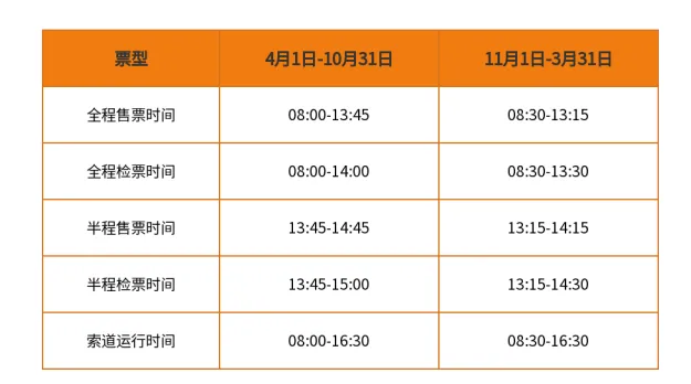 入住主峰酒店的游客务必在当天下午3:00前到达景区,以免错过索道运行时间。