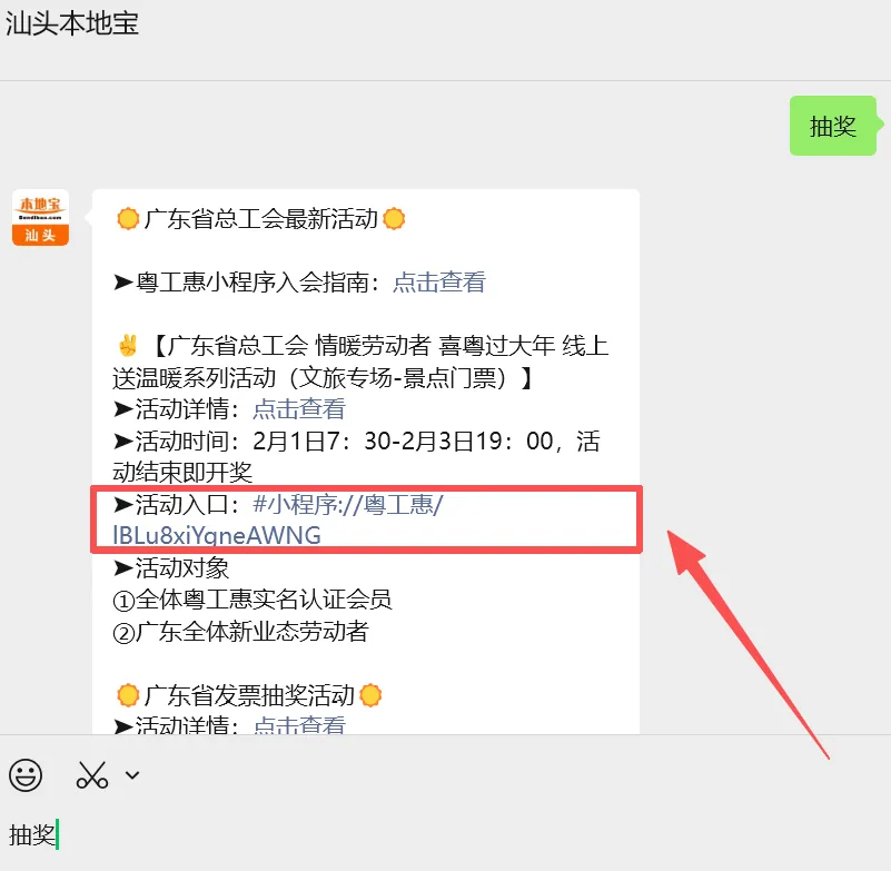 或长按下方二维码识别并关注公众号【汕头本地宝】聊天对话框回复【抽奖】即可获取活动入口。