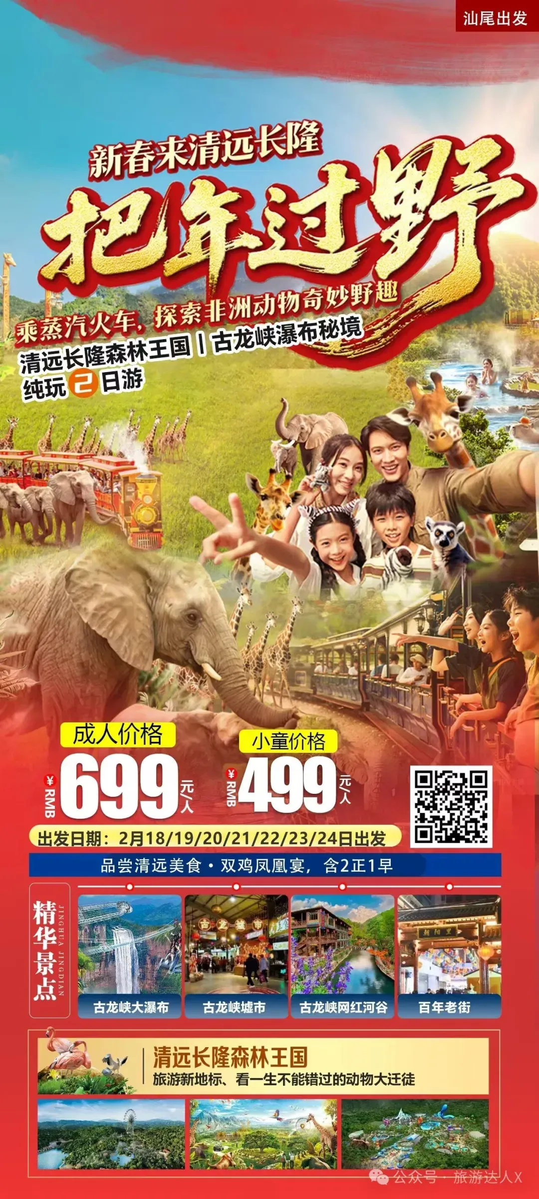 【携程旅游】2月19日出发699元/人→清远长隆森林王国、古龙峡秘境、打卡古龙潮墟、齐聚清远过大年纯玩汽车2天游