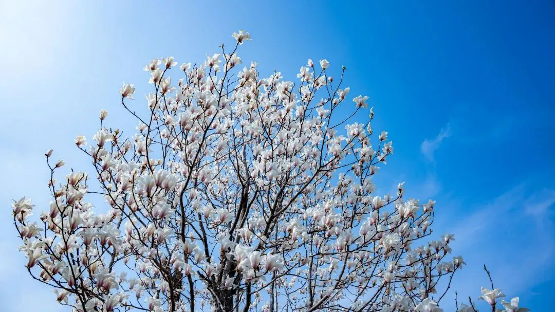 金鸡菊与芝樱花肆意绽放,像是给大地铺上了一块绚丽的花毯。玉兰亭立枝头,在湛蓝天空下绽开清雅的篇章。