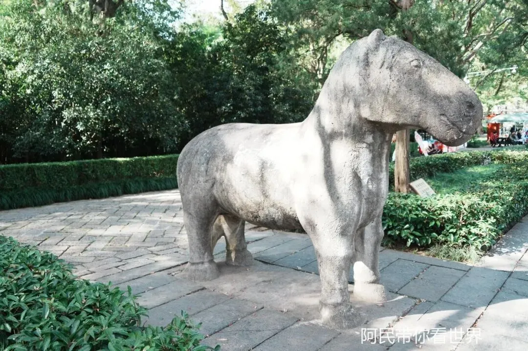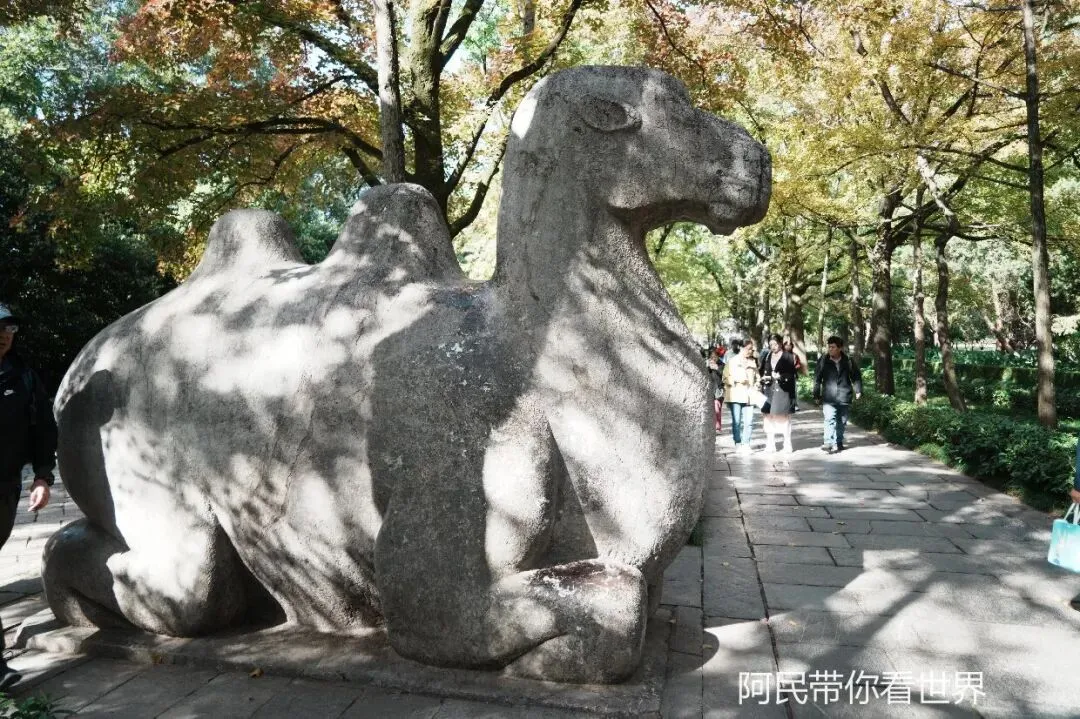 明孝陵最牛的地方,是它开创了明清帝陵的“标准模板”。从下马坊到宝顶,2.6公里的纵深里,神道蜿蜒如北斗七星,石象路615米长,12对石兽威风凛凛,狮子、獬豸、骆驼、象、麒麟、马,全是整块巨石雕刻,气魄宏大。