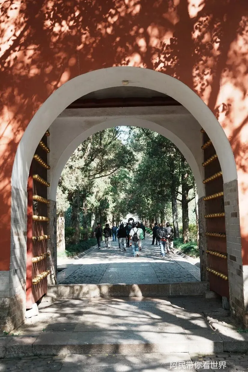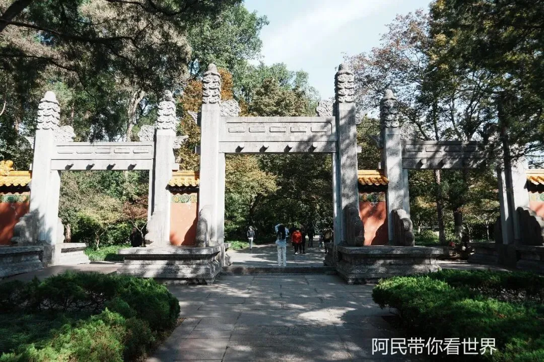 更绝的是,它把山水融进建筑——紫金山作靠山,梅花山当前案,连东吴大帝孙权的墓都“借”来当“守门人”,朱元璋那句“孙权也是条好汉,留着给我看门吧”,让神道绕了梅花山一圈,成了今天的经典景观。