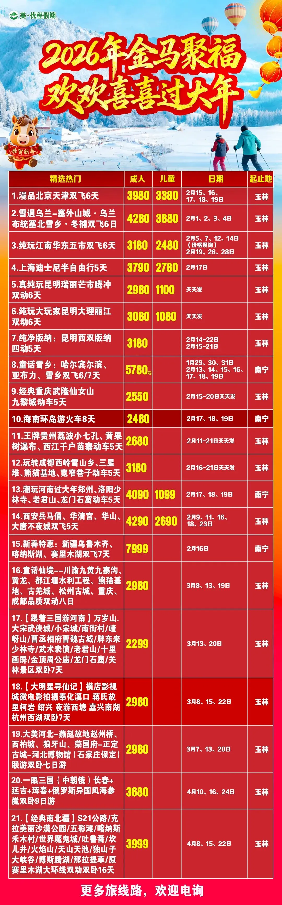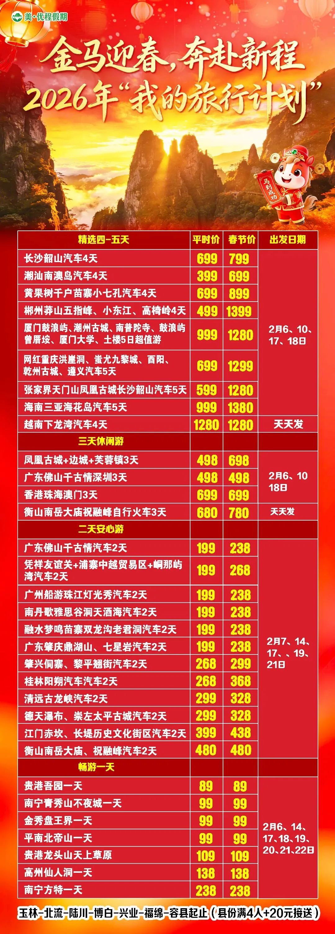 2026年春节长短途旅游线路汇总来啦!博白人你最想去哪里过年呢?