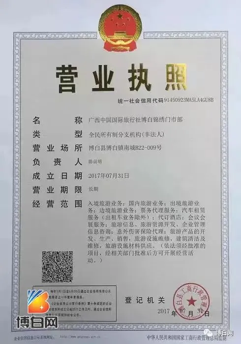 广西中国国际旅行社博白锦绣门市部博白网旗下成立6年历史的旅行社