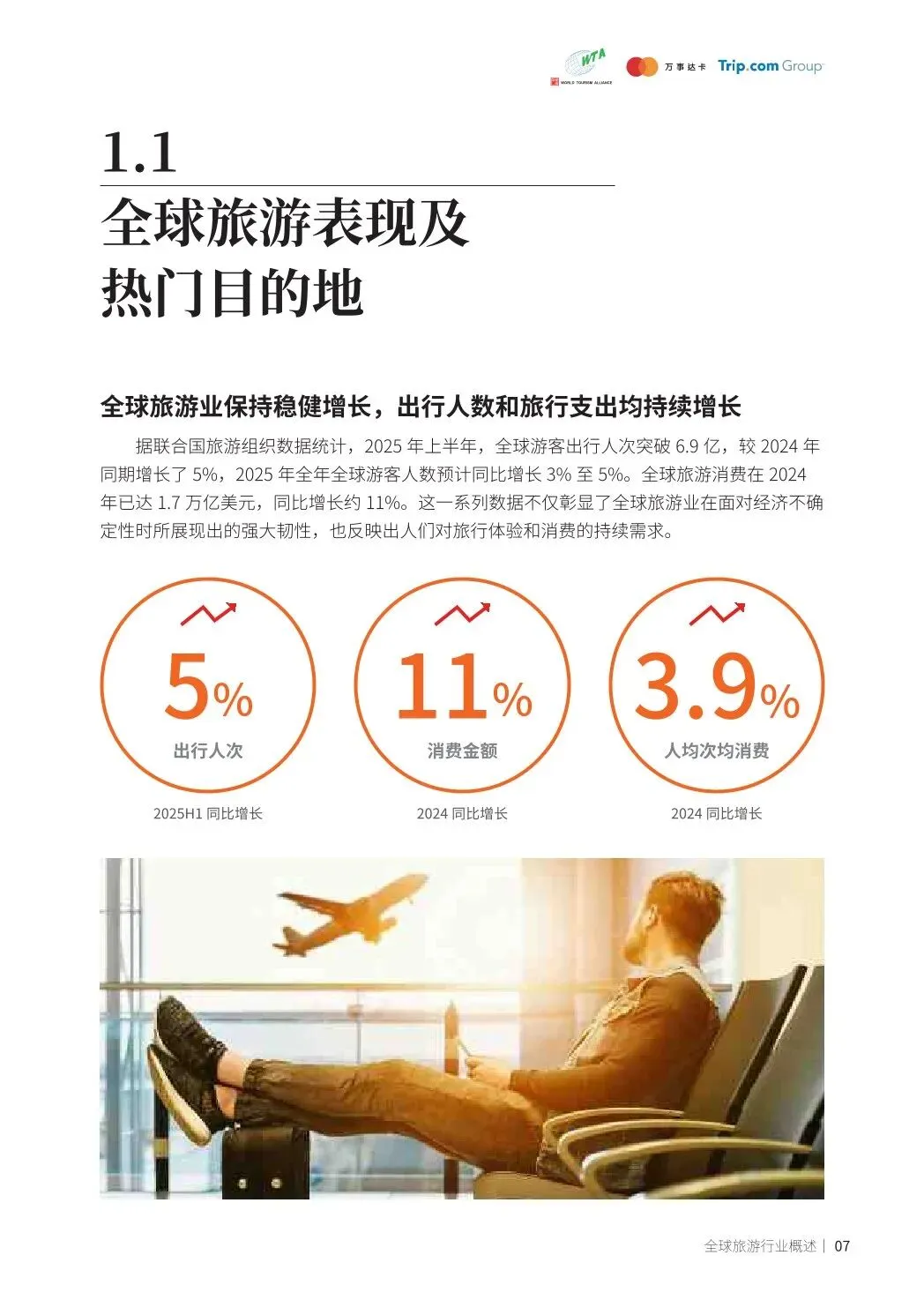 报告由世界旅游联盟、万事达卡、携程集团联合发布,依托详实数据源,聚焦全球旅游及中国出境游、入境游整体消费趋势。分析 2024 年三季度至 2025 年二季度行业动态,涵盖热门目的地、游客行为、消费结构等维度,提出出行新趋势与发展建议,为旅游行业高质量发展提供借鉴。