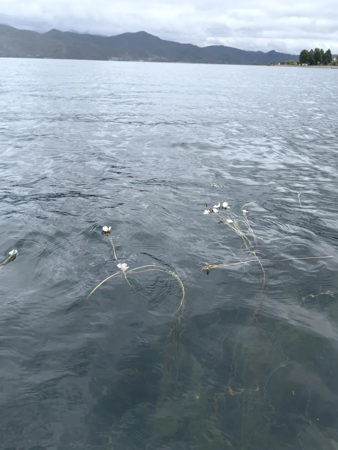 吃完午饭,我们先去走婚桥,早上讲解的阿妹和她的阿哥就是走婚桥认识的。之后我们去坐猪槽船,去泸沽湖上的里务比岛,划船的两个人是谁家的舅舅?(在这里没有生下女孩,那可是天大的事儿,可真是后继无人了。)他们的工资也要回家上交祖母吧,于是我们自愿每人多掏30元环岛一周,这样他们就有了私房钱。岛很小,上面有座庙,不过岛并不是重点,重点是欣赏泸沽湖的美景。泸沽湖边上已经开了很多水性杨花,这种花对水质要求极高,仅生长于清澈无污染的淡水环境中,在两岛中间处水较浅的地方就可以看到泸沽湖的水有多清,水底的石头是清晰可见。这里的水可以直接舀一碗喝,因为已达到了国家最高标准,优于国家饮用水标准,并且不用担心,绝没有西游记中女儿国湖水的功效。泸沽湖不管是文化还是景色都值得一逛,为了支持摩梭人,还给女儿买了一个银镯子。
