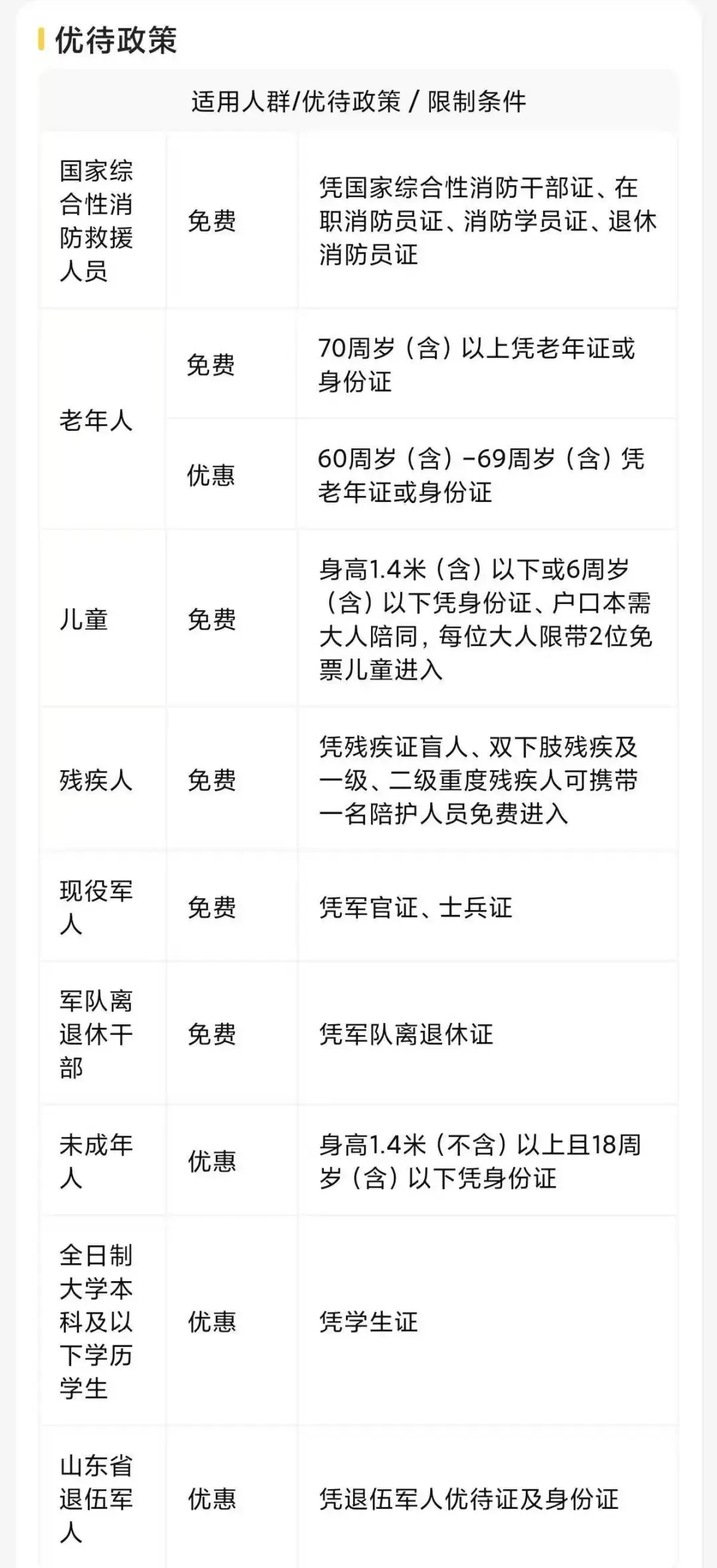 尼山圣境优待门票政策