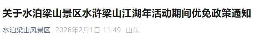 近期有较多游客咨询关于水泊梁山景区春节活动期间的优免政策,现就活动期间优免政策进行公示如下: