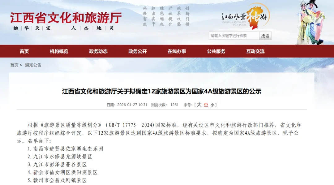 近日,江西省文化和旅游厅发布