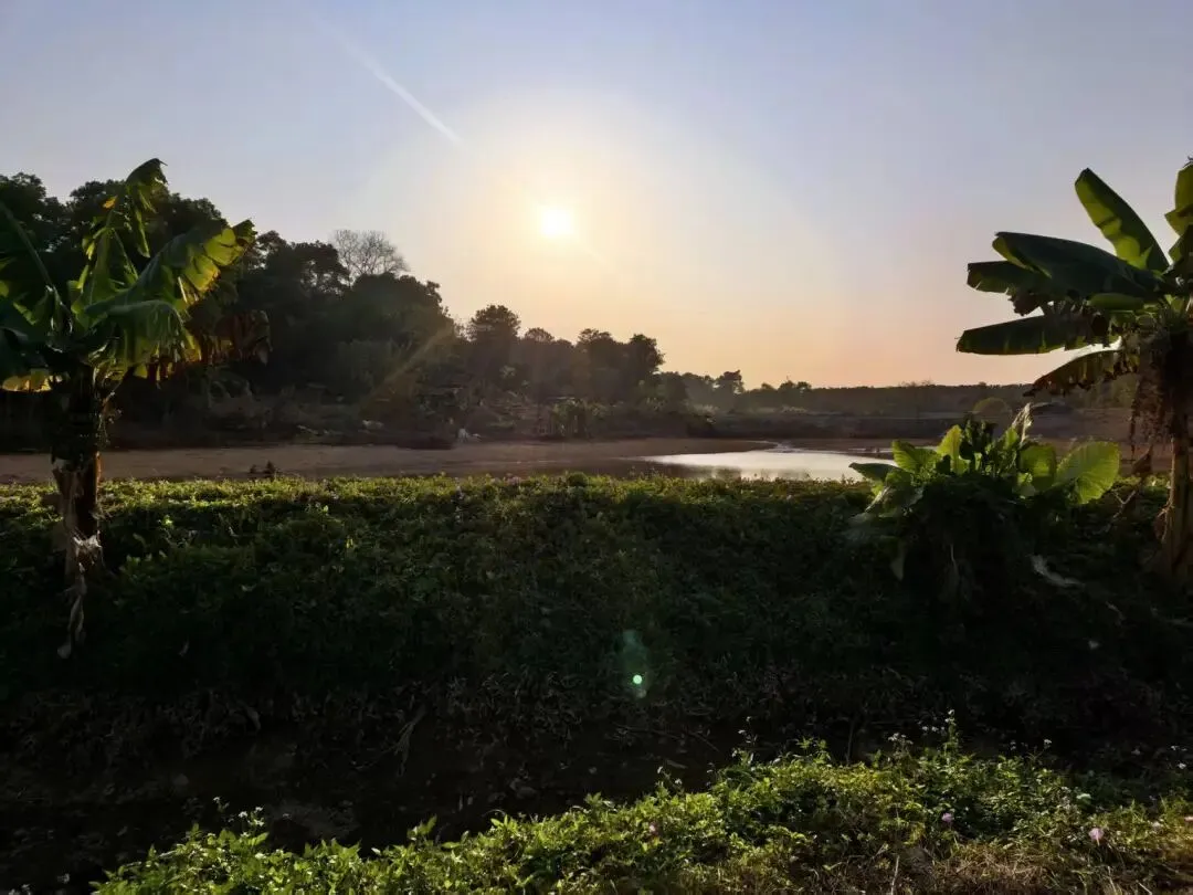 我去程时,一路走,一路把看到的景色拍成照片或视频发到家人群里,回程抓紧时间,走了十五六分钟,还没有走到。太阳快落山了。一回头,看到夕阳映照在湖面上,没有拍。