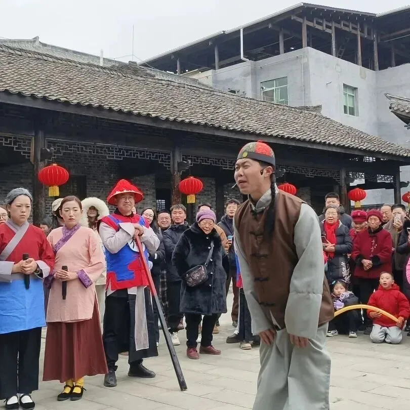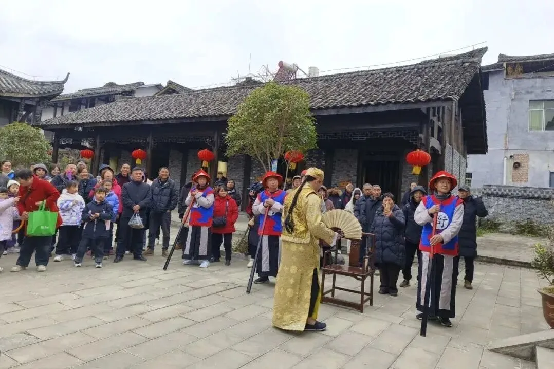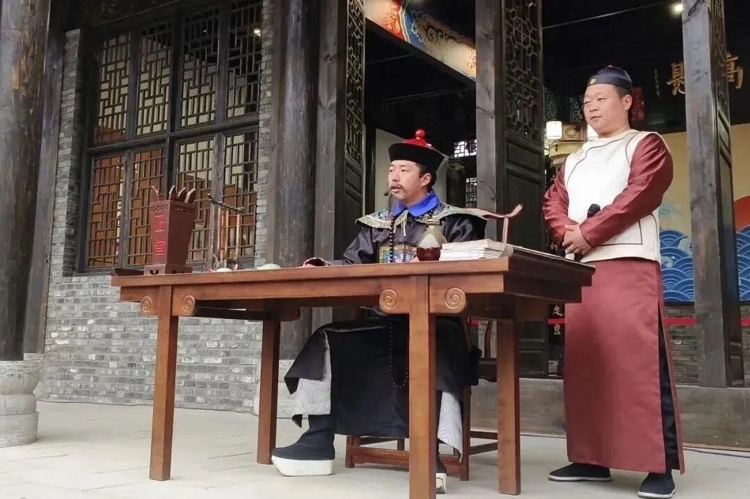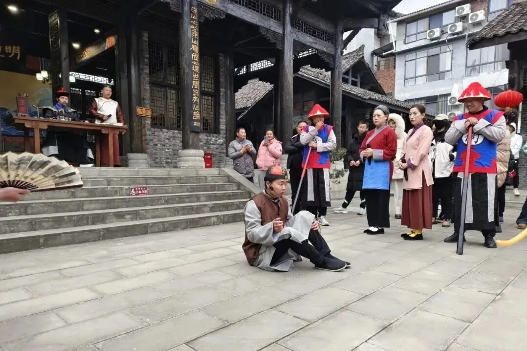 灯笼高悬的古县衙内,剧情徐徐展开,身着古装的演员们生动演绎,让你仿佛置身明清市井,亲历一场趣味盎然的断案现场,沉浸式感受历史与年味的碰撞。