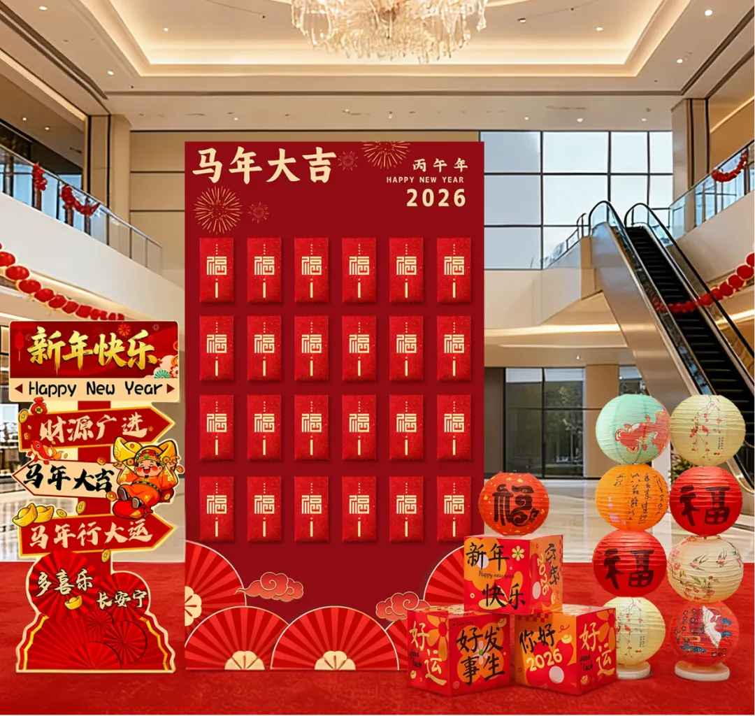 集齐 7 枚福气印章,便可亲手撕下抽奖券。红色的抽奖墙上,金色福字与马形图案相映成趣,从文创礼品到终极大奖夜观体验卡,100% 的中奖率,让每个人都能抱得好礼,满载欢喜而归。