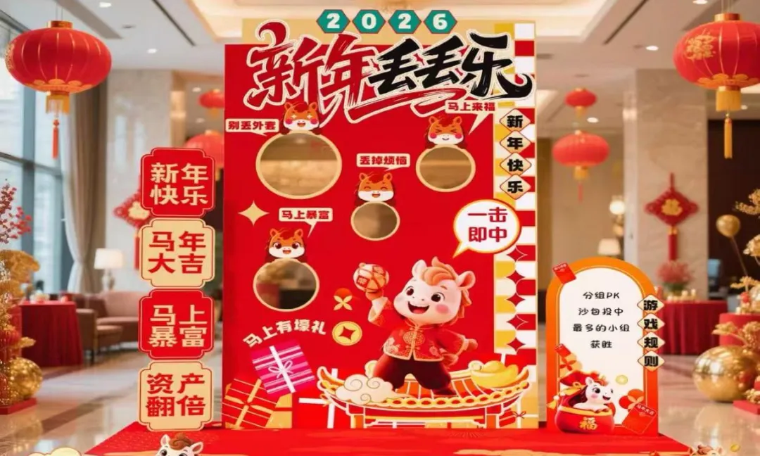 快乐加 “马” 百发百中:1.5 米外投掷沙包,重温童年欢乐,3 投 2 中的成就感,让笑容格外灿烂。