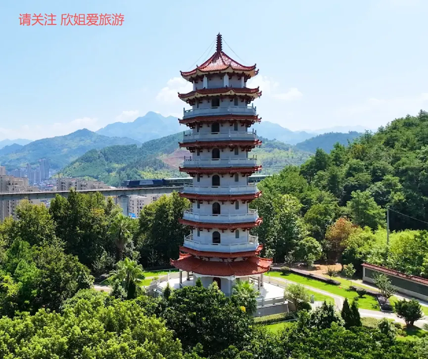七星塔渊源可追溯至宋代,原塔位于佛字山西麓,砖木结构、空心八角,为镇伏水妖,塔基埋藏铸铁小牛。清咸丰八年,古塔因火灾化为焦土,仅余塔基。后重建于佛字山前峰,为七层八角仿古楼阁式石塔,以混凝土为核心、外覆石材,重檐琉璃瓦顶,塔内设旋转楼梯,二层以上壁挂历代名贤肖像与生平,底层有楹联,塔周有启明亭、栖霞亭及诸佛寺。