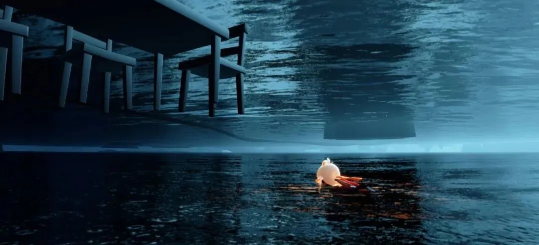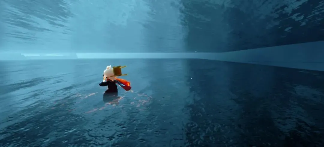 这底下是第二层水面,如果刚刚那步往前拉了可以咱就直接掉下去了,摁,咱这样下来也千万别再潜水,不然就像下图一样掉下去了,而且上边是石头的建模,没法回去。