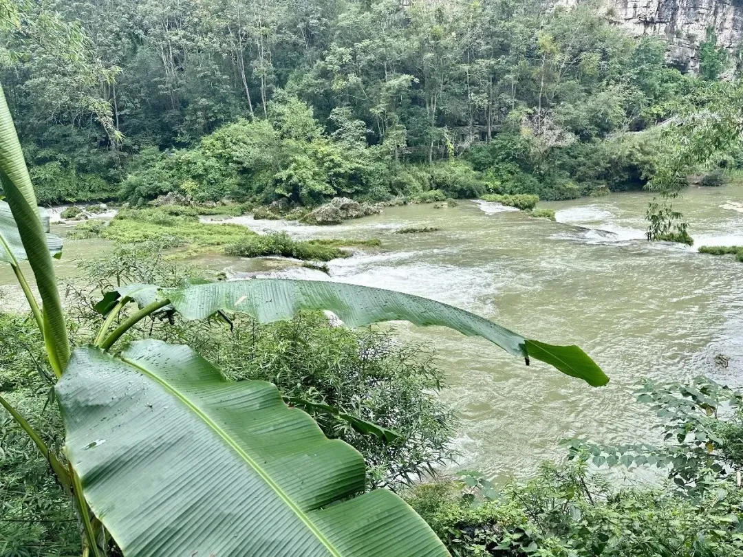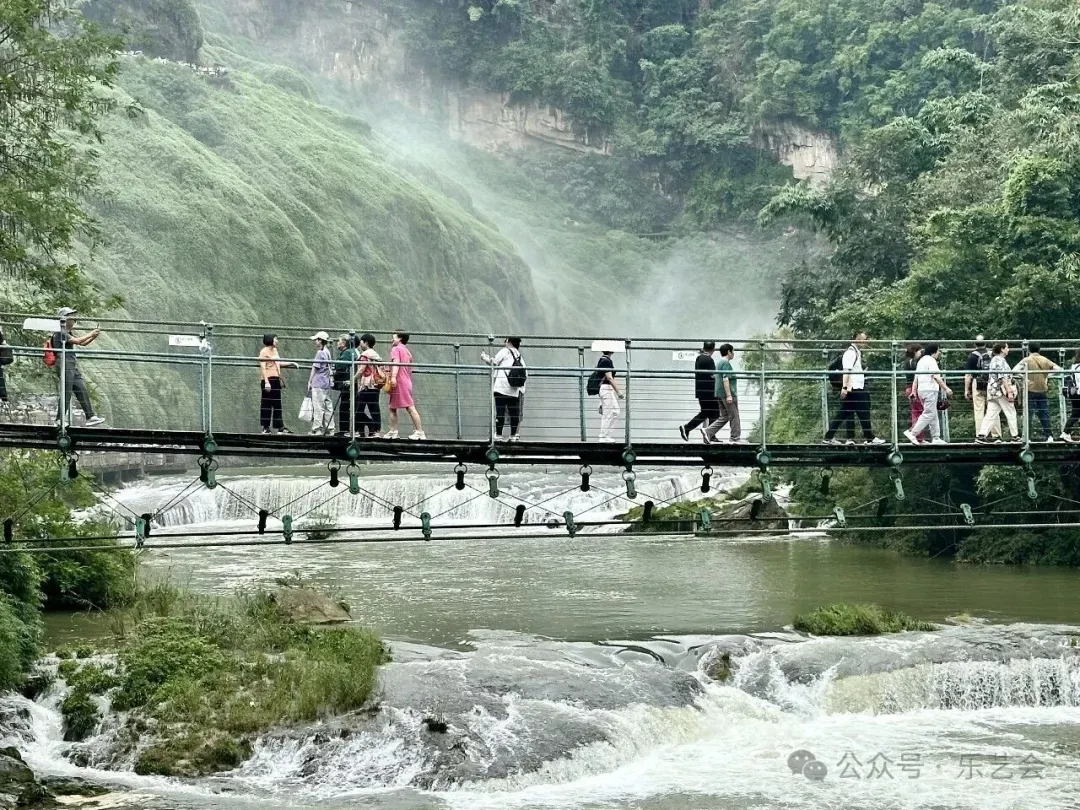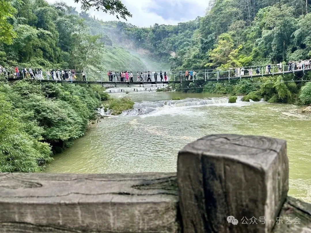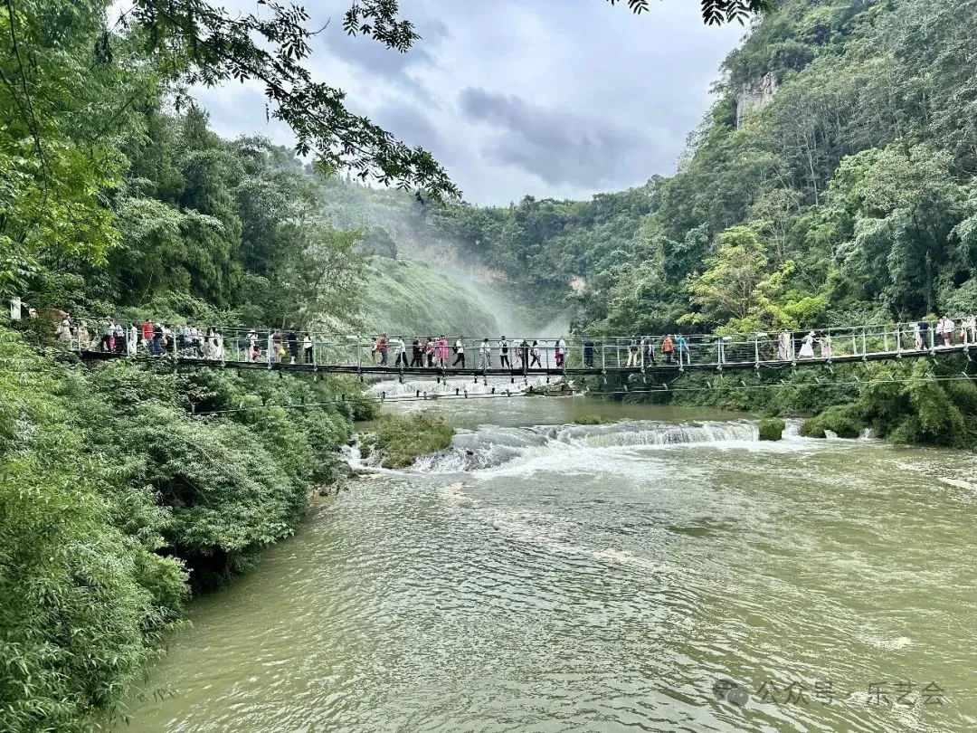 黄果树瀑布景区揽胜上篇:郑央分享黄果树瀑布在打邦河流域的白水河段上,河水由北向南,到达黄果树时,河床出现一个大的纵坡裂点形成黄果树瀑布,水流经瀑布后向西绕行一个近似半圆的弧形,弦长500米,向西凸出300米,到达水刮冲以下的螺丝滩头,恢复由北向南的流向。瀑布宽101米,高77.8米。瀑布飞泻入犀牛潭,水流依次经过三道滩、马蹄滩、猪龙潭、油鱼井、锅底凼、湾塘、冒水塘. 徐霞客描写黄果树瀑布:“透陇隙南顾,则路左一溪悬捣,万练飞空,溪上石如莲叶下覆,中剜三门,水由叶上漫顶而下,如鲛绡万幅,横罩门外,直下者不可以丈数计,捣珠崩玉,飞沫反涌,如烟雾腾空,势甚雄厉;所谓‘珠帘钩不卷,飞练挂遥峰’,俱不足以拟其壮也。”在他所见的瀑布中,“高峻数倍者有之,而从无此阔而大者”。从那时起,黄果树瀑布就逐渐被人们认为是全国第一瀑布。