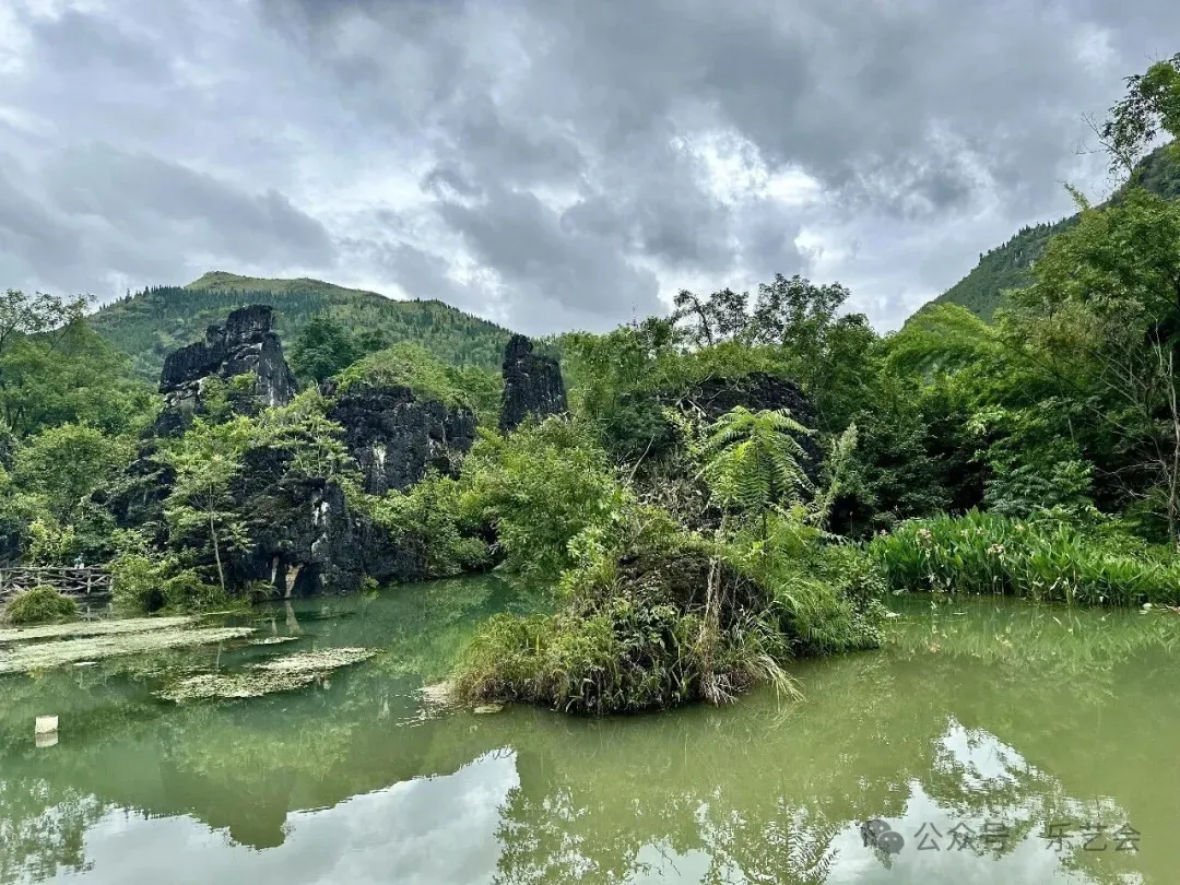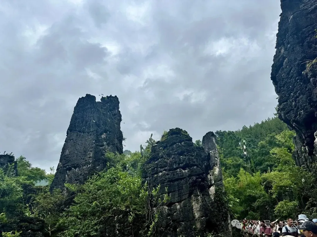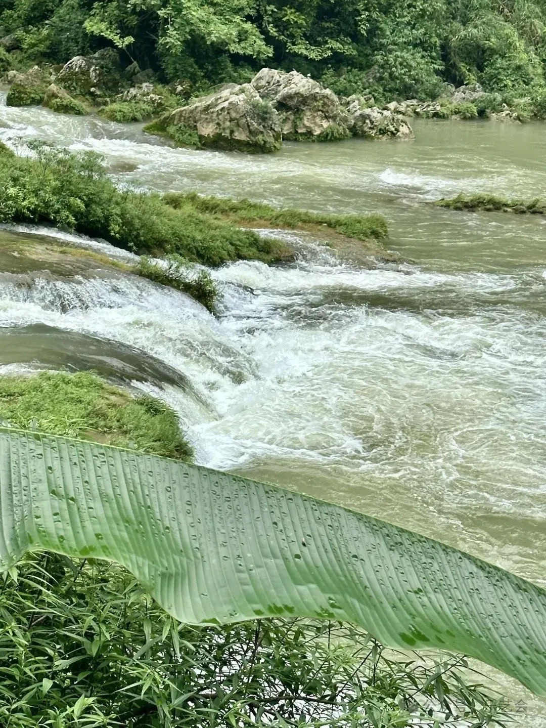 黄果树瀑布景区揽胜上篇:郑央分享黄果树瀑布在打邦河流域的白水河段上,河水由北向南,到达黄果树时,河床出现一个大的纵坡裂点形成黄果树瀑布,水流经瀑布后向西绕行一个近似半圆的弧形,弦长500米,向西凸出300米,到达水刮冲以下的螺丝滩头,恢复由北向南的流向。瀑布宽101米,高77.8米。瀑布飞泻入犀牛潭,水流依次经过三道滩、马蹄滩、猪龙潭、油鱼井、锅底凼、湾塘、冒水塘. 徐霞客描写黄果树瀑布:“透陇隙南顾,则路左一溪悬捣,万练飞空,溪上石如莲叶下覆,中剜三门,水由叶上漫顶而下,如鲛绡万幅,横罩门外,直下者不可以丈数计,捣珠崩玉,飞沫反涌,如烟雾腾空,势甚雄厉;所谓‘珠帘钩不卷,飞练挂遥峰’,俱不足以拟其壮也。”在他所见的瀑布中,“高峻数倍者有之,而从无此阔而大者”。从那时起,黄果树瀑布就逐渐被人们认为是全国第一瀑布。