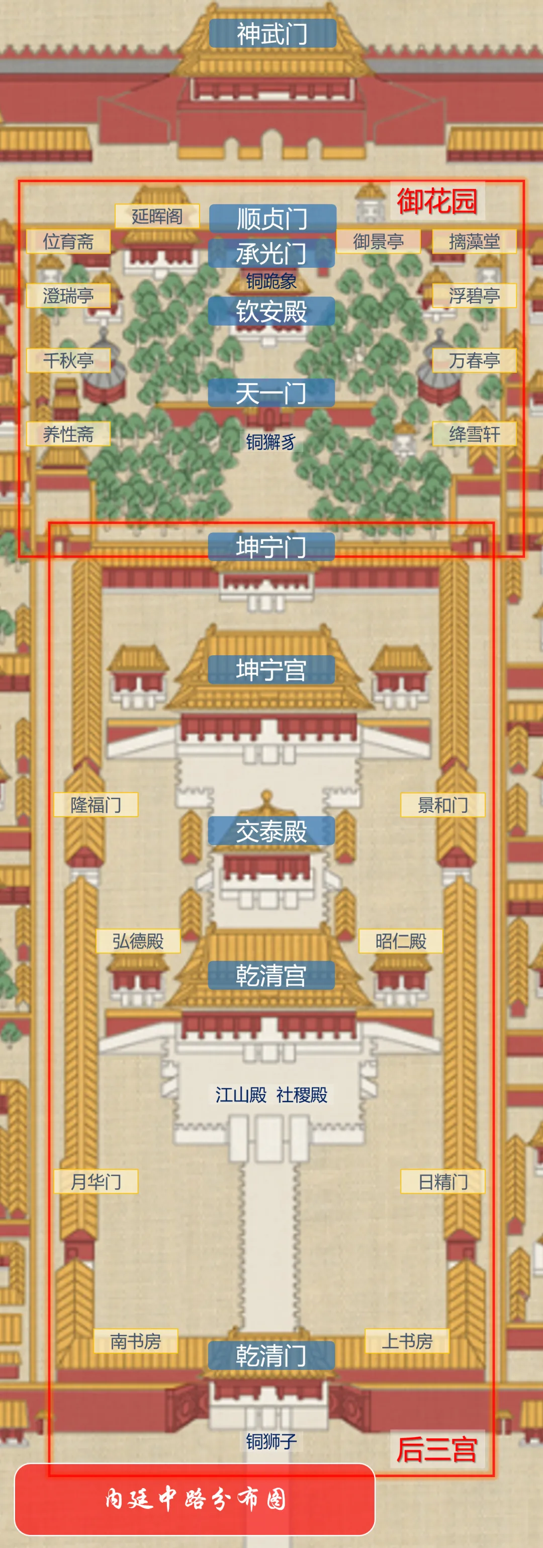 内廷中路主要是后三宫与御花园区域。
