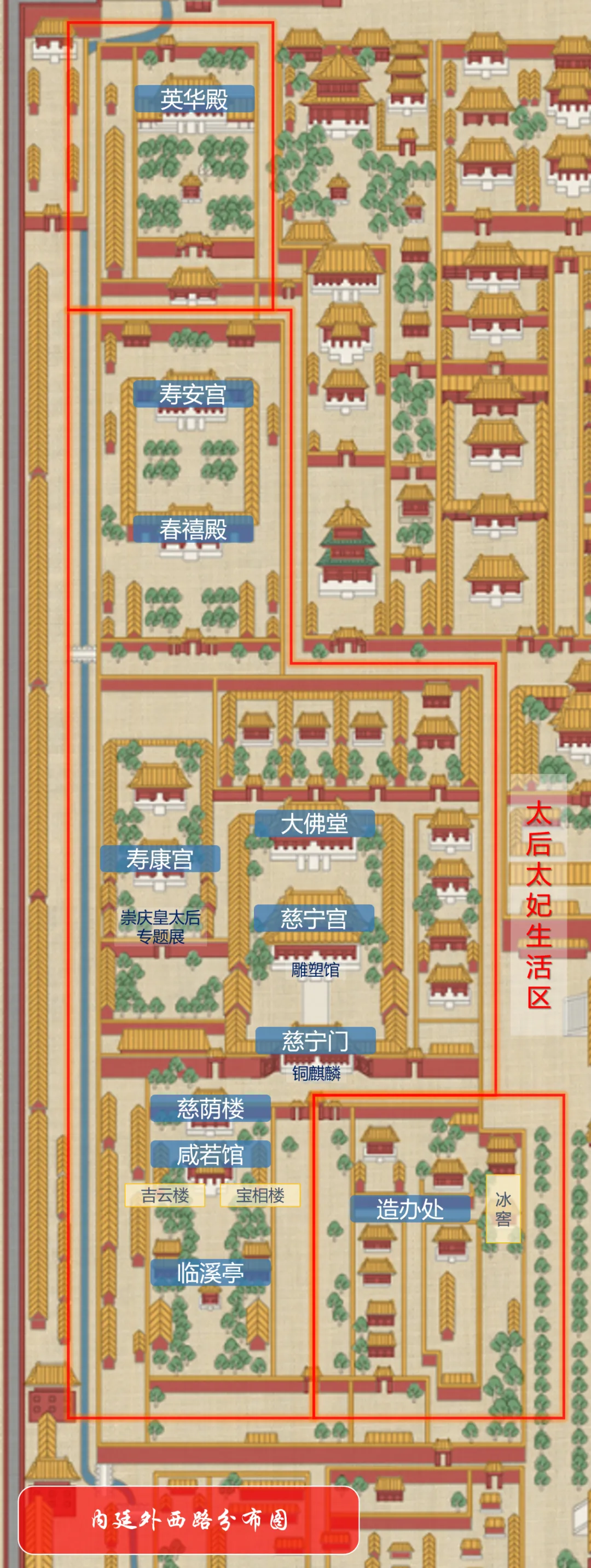 内廷西路 · 西六宫:翊坤宫、储秀宫、太极殿、长春宫
