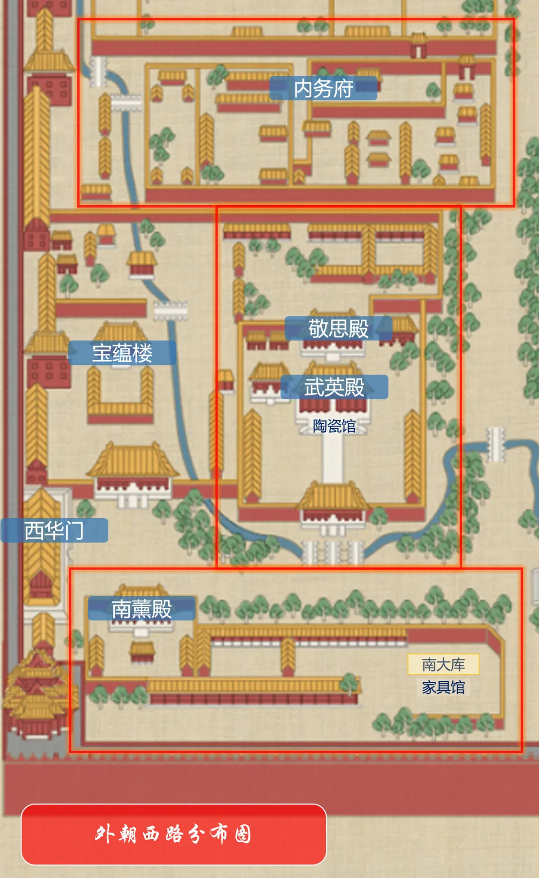 内廷西路同样可分为中部、南部、北部三个子区域。