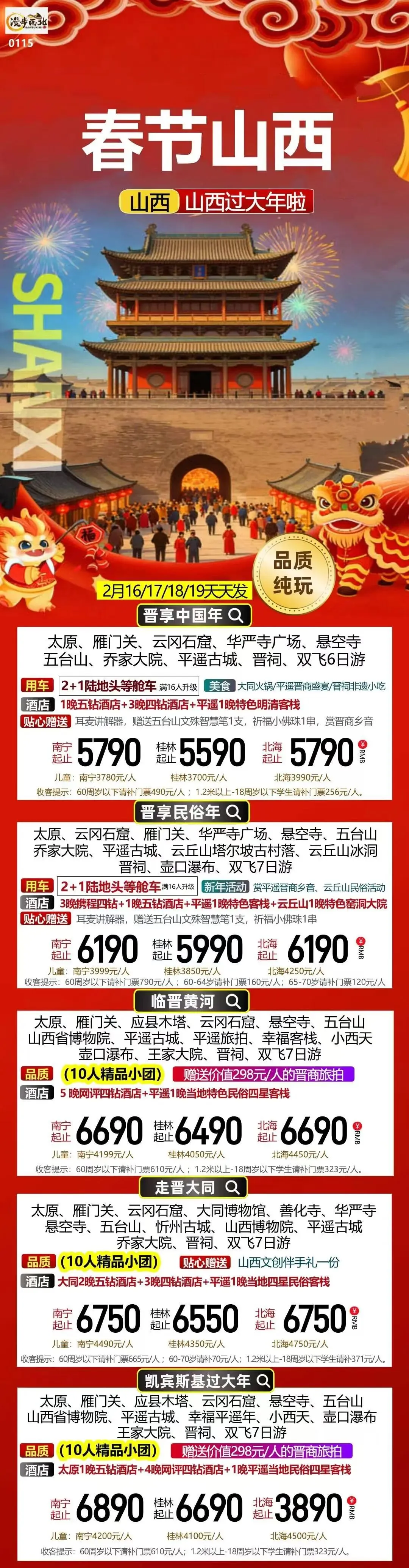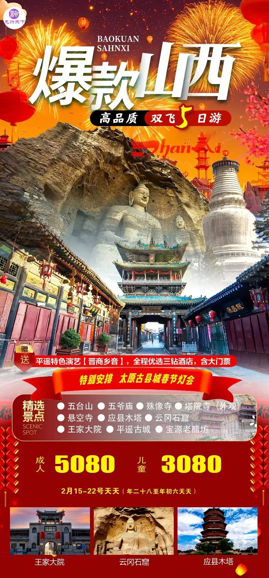 【山西】2月 春节&寒假 山西 旅游线路推荐 报名优惠!