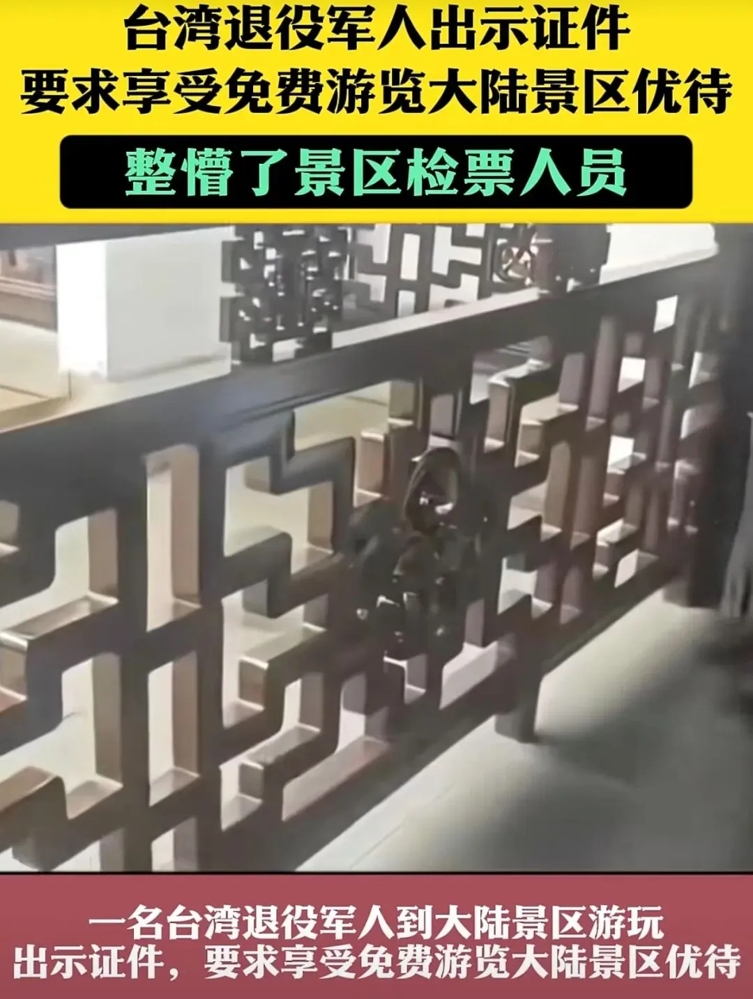 当时景区检票员都被对方整懵了,湾湾来的退役军人持证,要求免费游园,语气凌厉,说的还这么冲,这事挺难办。