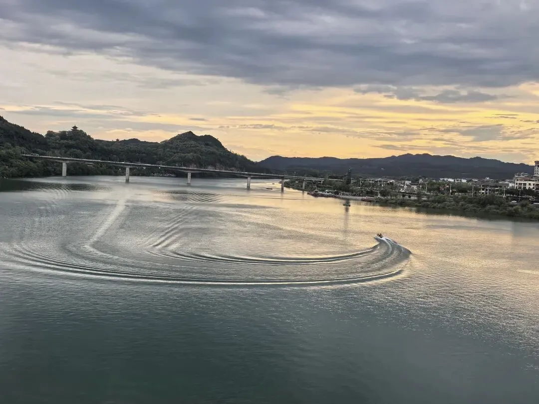 晨雾如轻纱漫过江面,马哮溪大桥静卧于氤氲之中,桥身若隐若现,恍若仙家虹桥遗落人间。桥下碧水潺湲,似在低语昨夜星辰的私语。江畔芦苇轻摇,露珠晶莹如星子坠入翡翠,偶有白鹭掠过水面,翅尖点破薄雾,留下一痕涟漪,恰似诗圣笔下“松浮欲尽不尽云”的朦胧意境——山间云雾缭绕,松涛轻吟,如墨韵在画卷中肆意晕散。远处阆中水城轮廓渐显,水上飞机尚未划破长空,身披朝霞的渡轮来往于江面,船体的马达声与晨鸟清啼交织,荡开层层涟漪,宛如在翡翠玉带上缀以银珠。江风裹挟草木清气拂面,仿佛能听见陆游“挽住征衣为濯尘”的轻叹,在晨光中化作一缕澄澈的闲适,令人心魂俱静。沿江岸绿道徐行,可见晨练者衣袂翩然,太极招式如云水流转,与山水共呼吸,动静之间,时光凝为琥珀。