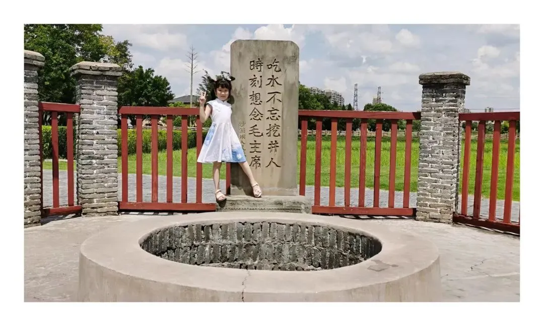 最难忘的还是红井,井口的石碑上刻着“吃水不忘挖井人,时刻想念毛主席”。以前沙洲坝特别缺水,乡亲们只能喝脏塘水,毛主席看到后,就带着红军战士和乡亲们一起挖了这口井。红军长征离开后,国民党派人想把井填掉,乡亲们拼命护住了它。我伸手摸了摸冰凉的石碑,看了看红井,还喝了几口井水,甜甜的特别爽口。