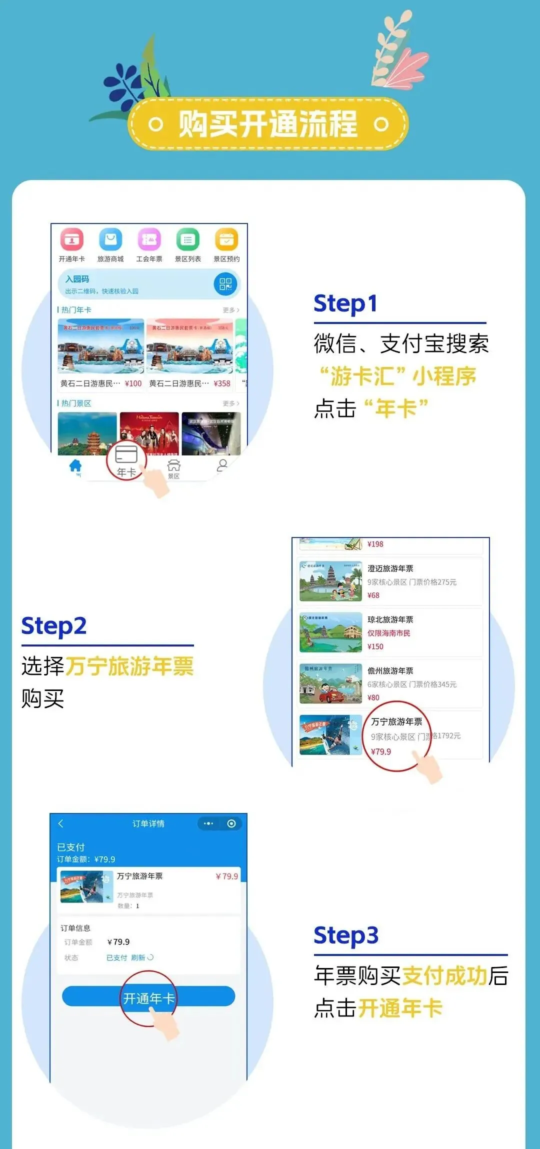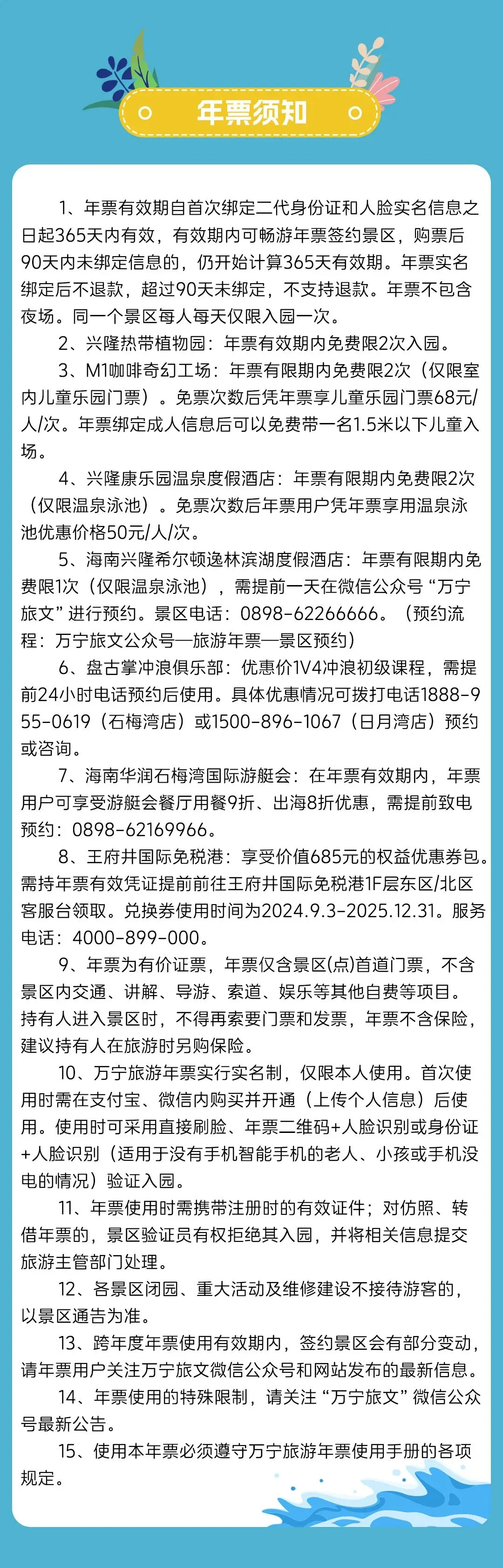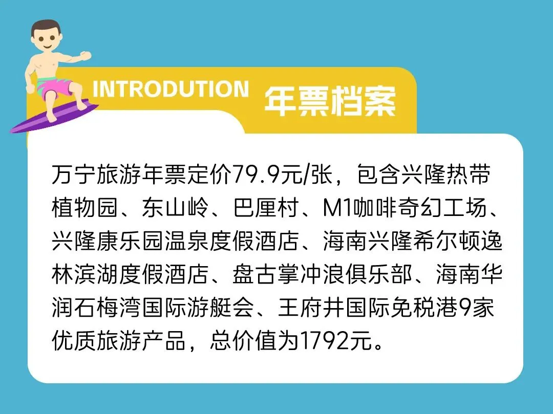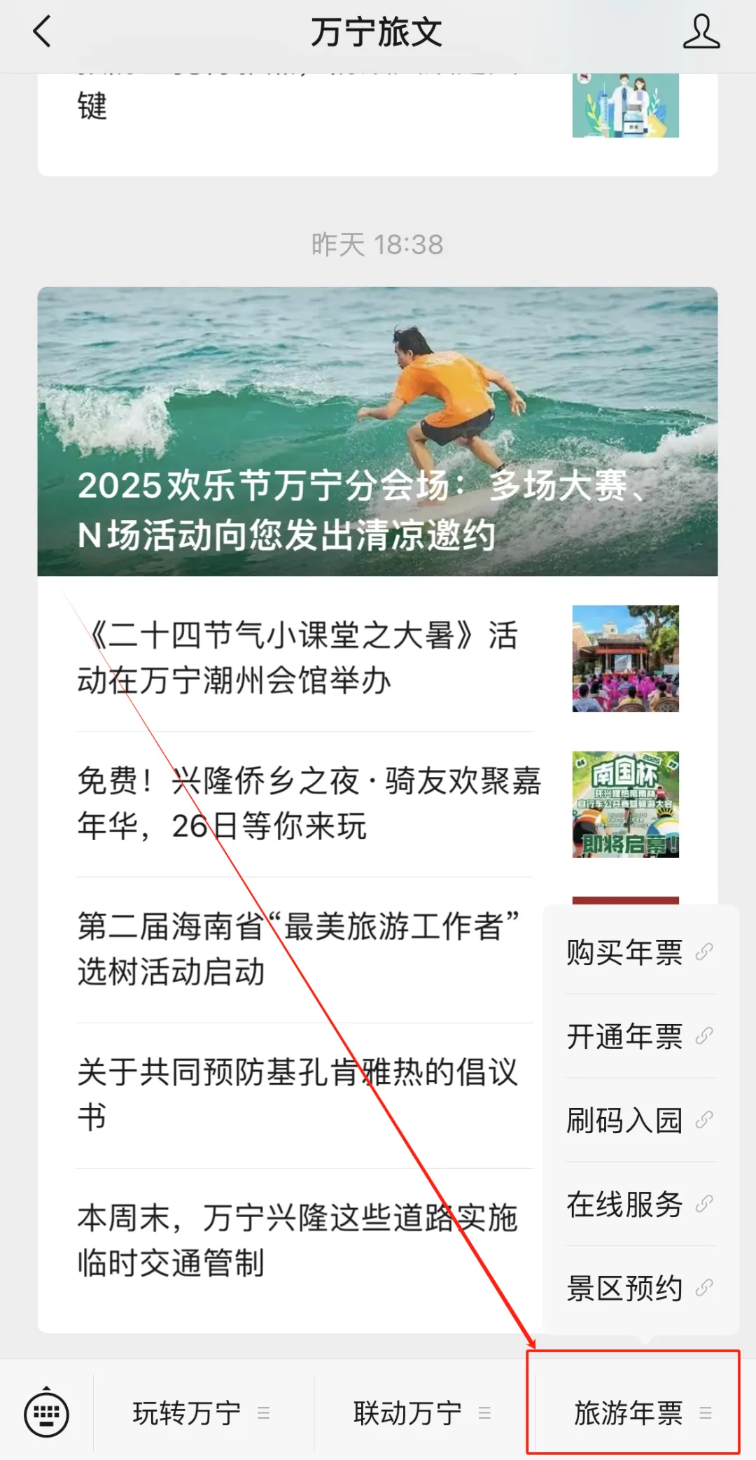 关注【万宁旅文】微信公众号,点击子栏目【旅游年票】,即可自行选购。