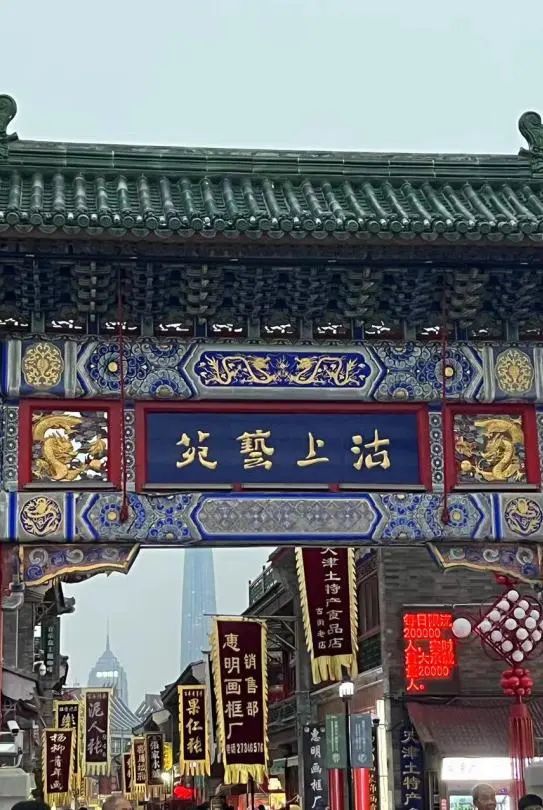 天津火车站出来就是海河广场,可以看到世纪钟,世纪钟也算一个地标性建筑了,白天和晚上都好看。我们是步行前往意大利风情区,看了看意大利风格特色建筑,坐了三轮车去和平路,步行看了瓷房子、张学良故居、张爱玲故居、吃了天津特色熟梨糕,坐1路公交车去古文化街“沉浸式”体验传统文化,耳朵眼炸糕、煎饼果子、泥人张、十八街麻花、狗不理包子......各种吃的应接不暇。整条街节日年味浓厚,挂满大红灯笼,拥有大量的人文景观、历史建筑,以天津皇会、“泥人张”彩塑技艺为代表的非物质文化遗产,以天津天后宫、玉皇阁为代表的不可移动文物汇聚于此,充分展示了“老城津韵”的底色。