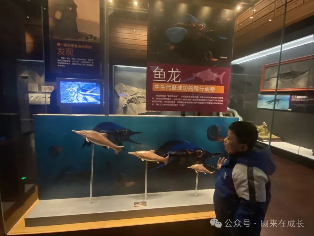 《龙的时代》展厅通过展览鱼龙、翼龙化石及霸王龙化石模型揭示海洋是生命的摇篮这一主题。
