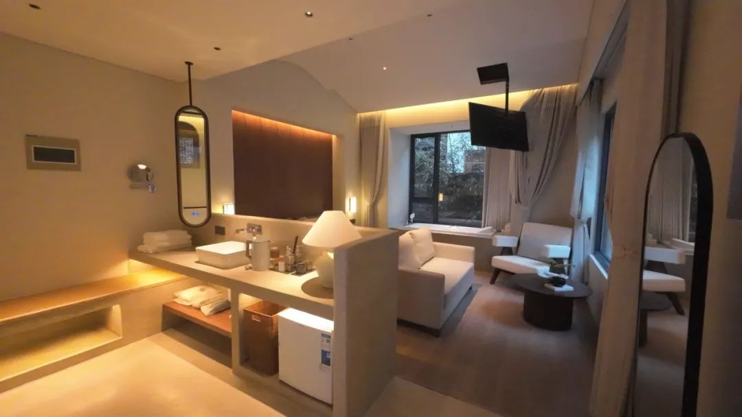 房间布局精简,通透明亮,空气清新,窗外美好的景致,蓝天白云,溪水潺潺,大自然馈赠的美景纷涌入内。清晨,鸟鸣声声入耳;夜晚,星空璀璨如画。三境民宿,让你的心灵得到真正的放松和滋养。