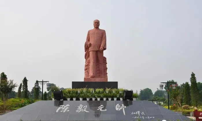 陈毅广场位于乐至县城,巨大的陈毅雕像坐落于此。