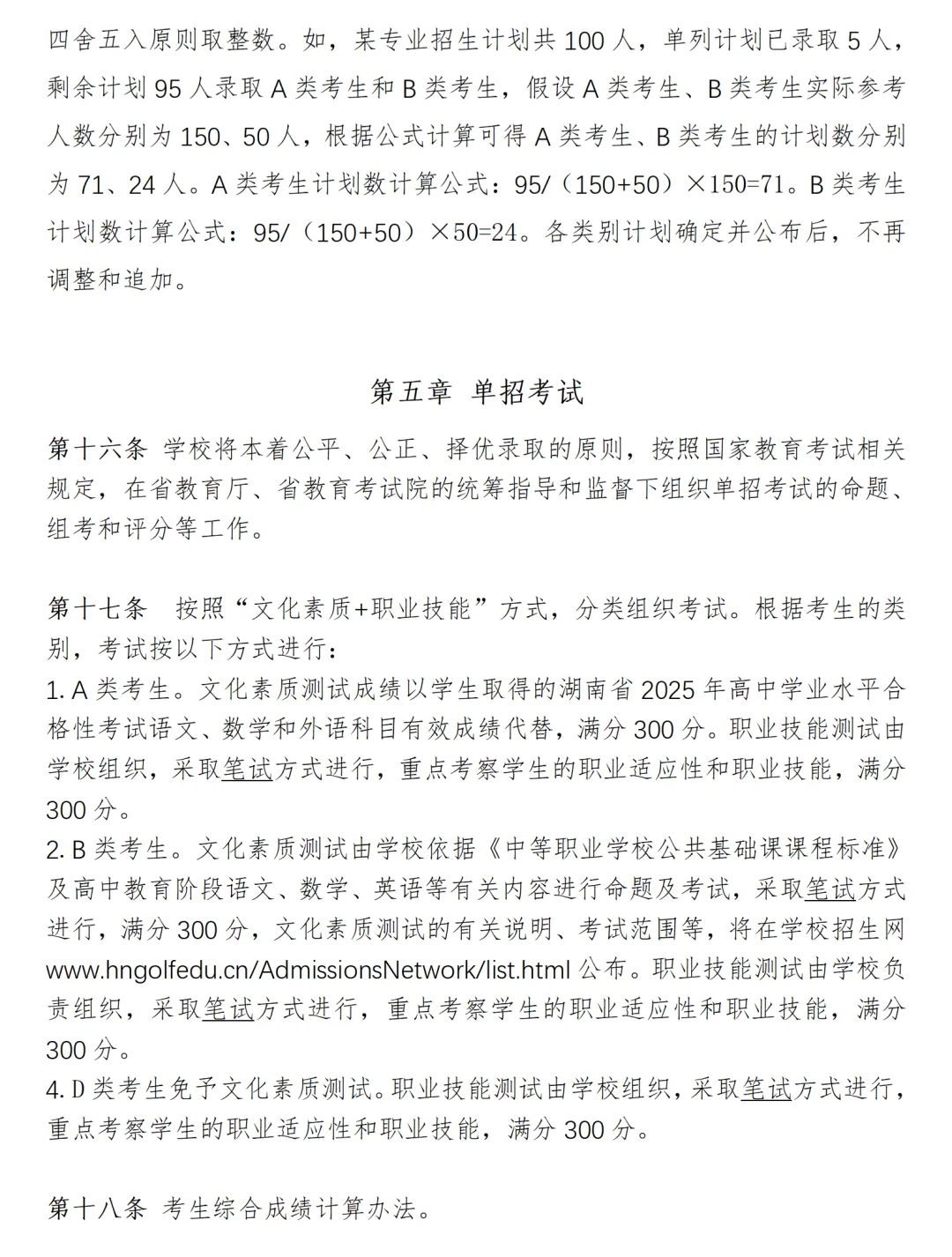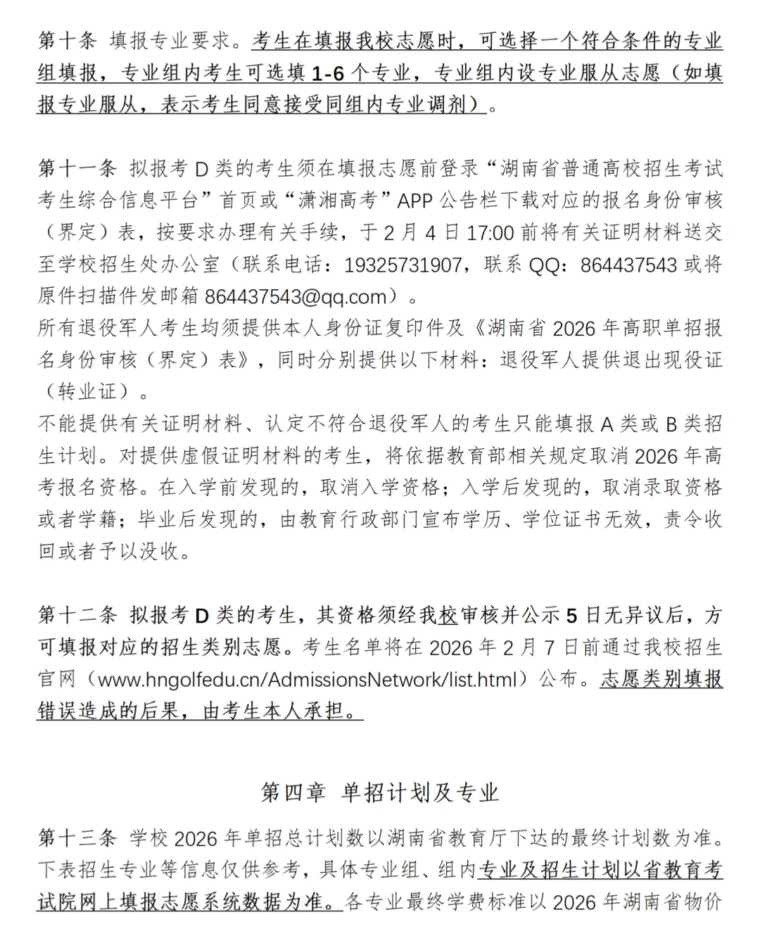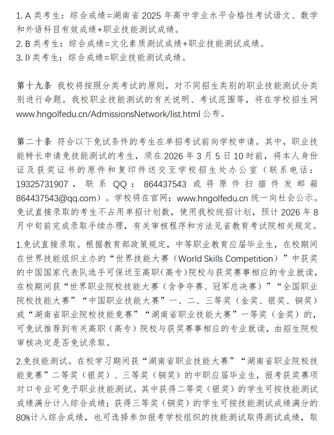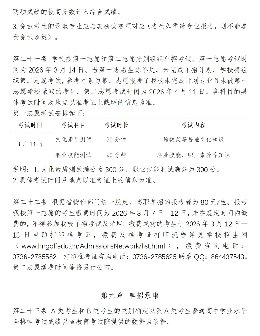 湖南高尔夫旅游职业学院2026年高职单招章程