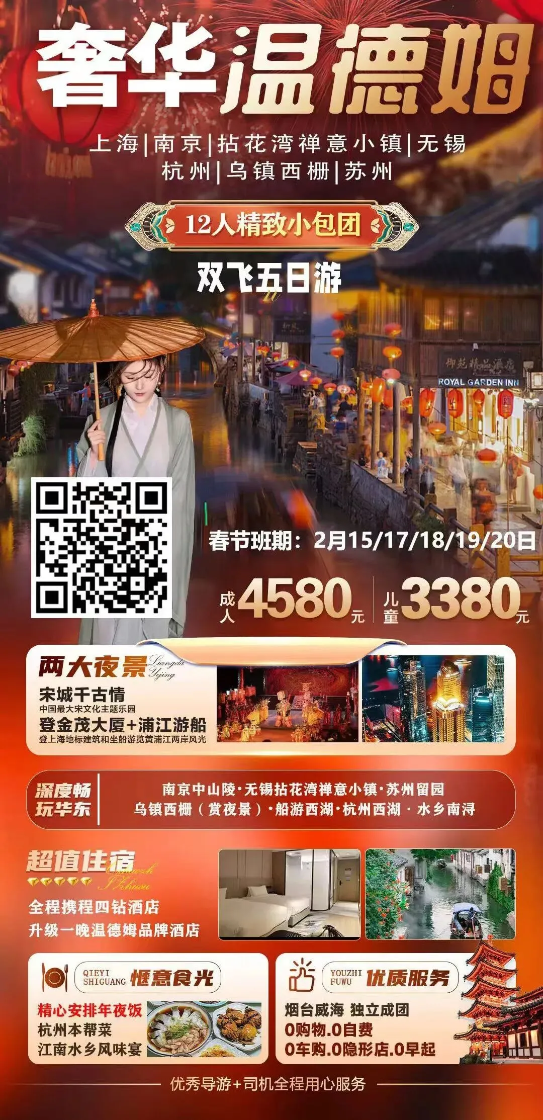 【2026春节定制江南游】|江南景点一网打尽|奢华温德姆双飞五日游